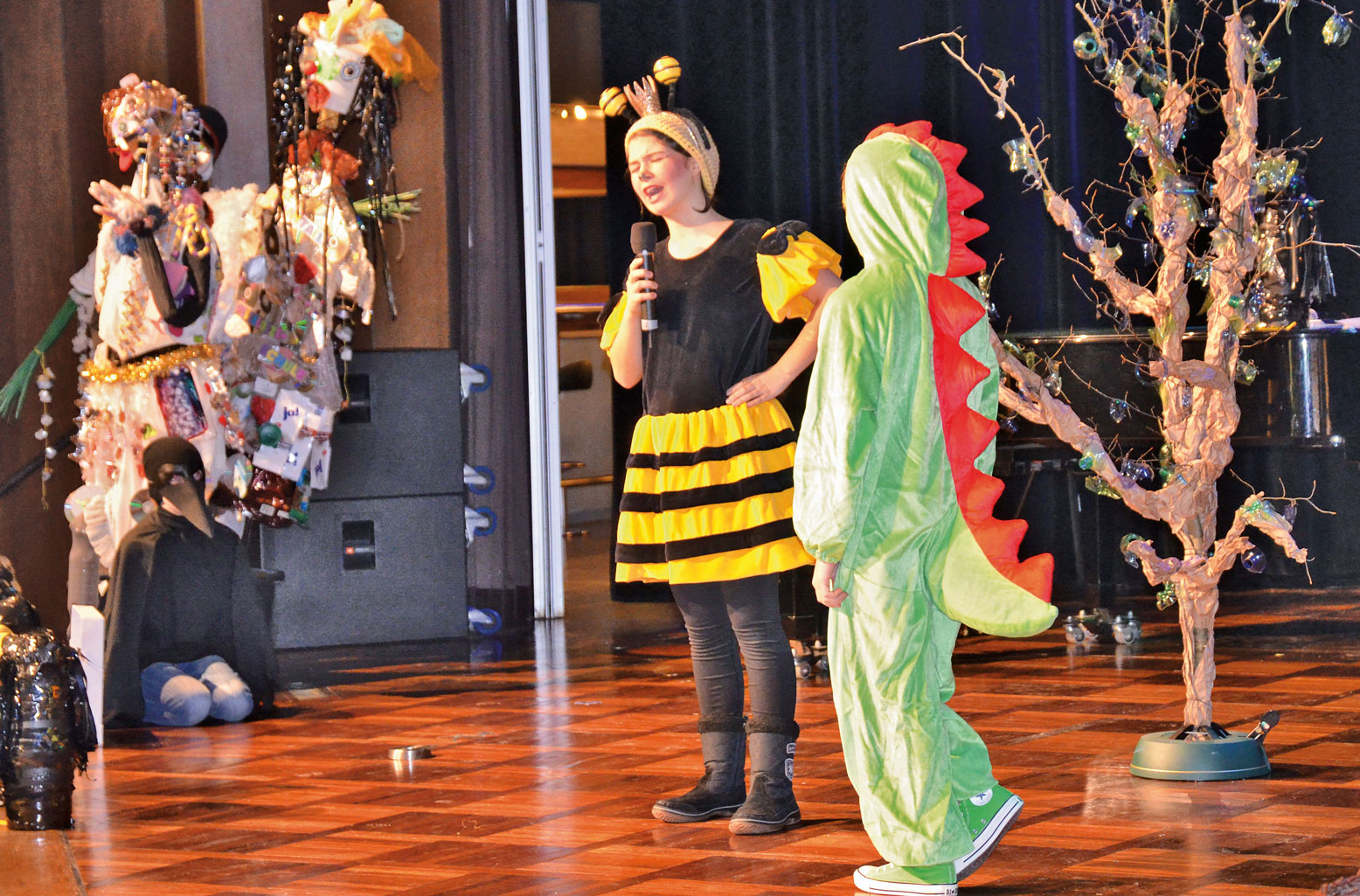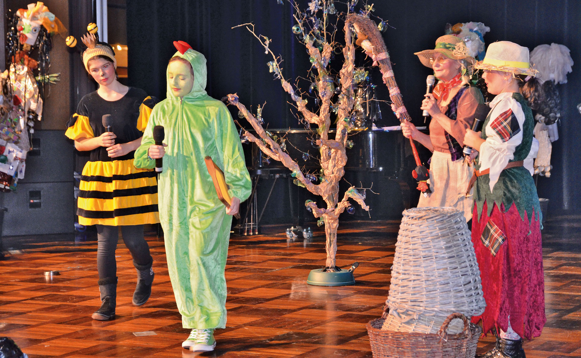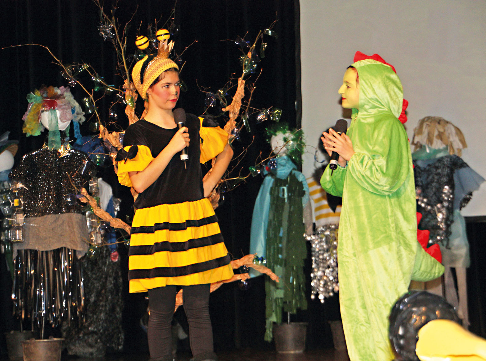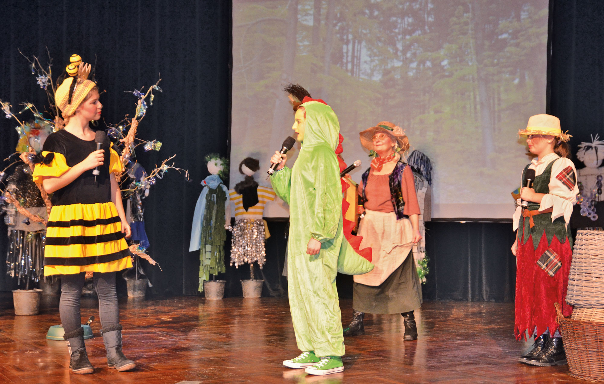 Alle Teilnehmer waren mit Begeisterung dabei. Eingestellt werden musste sich auf die veränderte Situation, statt Head-Sets gab es nur Handmikrophone, die Bühne war um ein Vielfaches größer als der Proberaum. Die Wartezeit dauerte über eine Stunde, obwohl die Gruppe nach etwa dreißig Minuten auftreten sollte. Dennoch gelang es allen, sich bravourös zu präsentieren. Mitgespielt haben außerdem Chiara Beck (Bienenkönigin), Alyssa Luck (Tabaluga) und Paula Kartes (Vogelscheuche). Den phantasievollen Baum (Kulisse) hatte die Kunstschule der Nachhaltigkeit (BiospärenART) hergestellt.