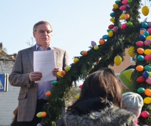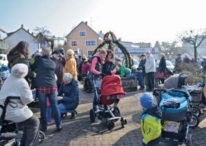 (Text: Dieter Wirth) Die Vorösterliche Feier erfreut sich immer größerer Beliebtheit. Ein Jahr lang mussten die farbenfrohen Osterhasen in ihrem Quartier ausharren, bevor sie wieder nach draußen durften, um die Vorbeifahrenden an den Ortseingängen zu grüßen. Die Mitglieder des Osterhasenvereins stellten auch in diesem Jahr die Osterhasen an den Ortseingängen auf. Der Heimat- und Verkehrsverein verteilte die Osterhasenfiguren vorm Rathaus und am Osterbrunnen am Marktplatz. Der Obst- und Gartenbauverein hatte den Lindenbrunnen auf dem Marktplatz wieder mit bunten Eiern und frischem Grün in einen herrlich geschmückten Osterbrunnen verwandelt.