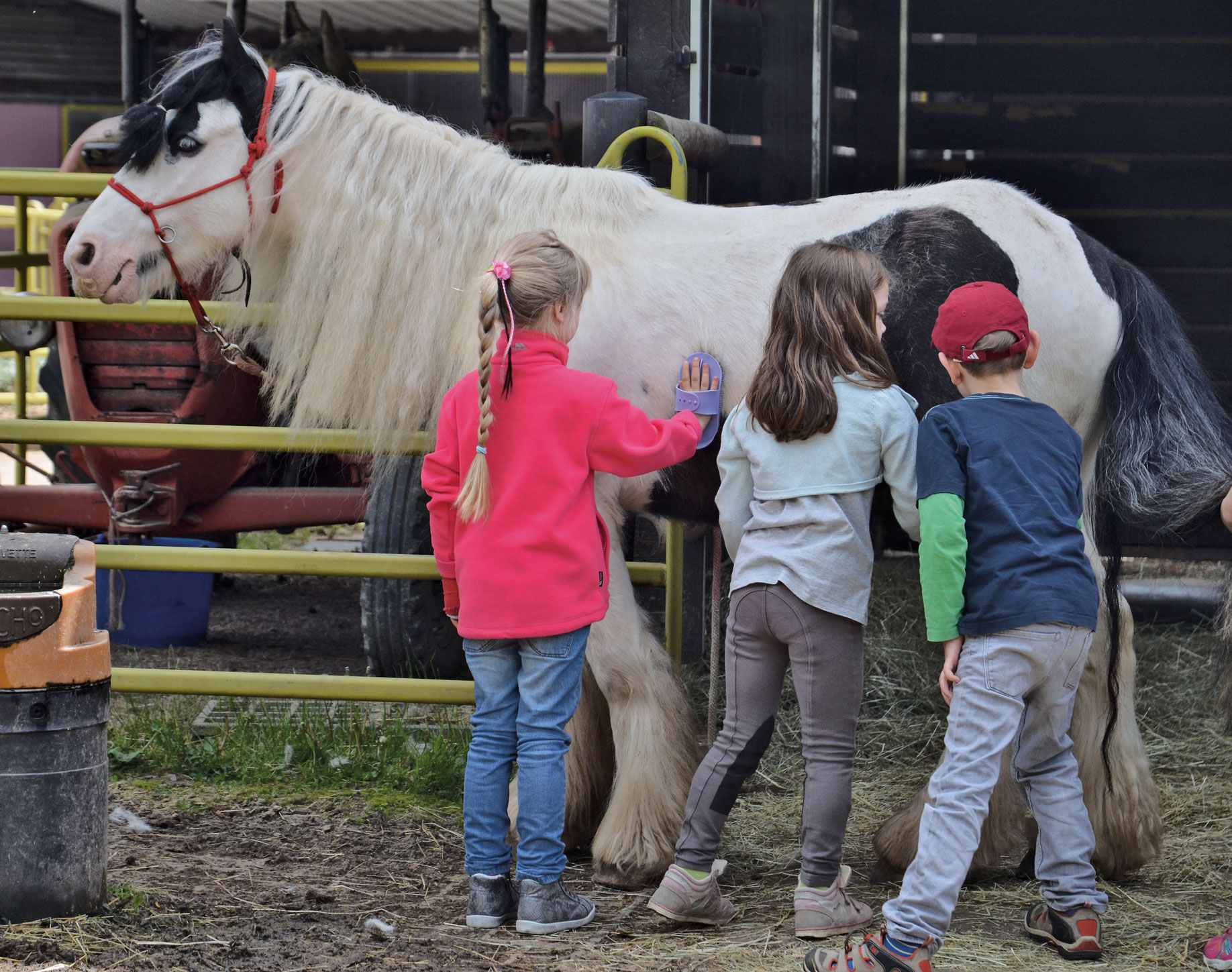 Erklärt wurde zunächst, welchen Abstand man zum Pferd einhalten muss, wie man es striegelt, dass keine Reitpeitsche benutzt wird und dass die Pferde keine Hufeisen tragen. Dann folgte das Anpassen der zur Verfügung gestellten Reithelme, bevor es zum Reitplatz ging. Nach dem Probieren auf einem Holzpferd durften die Kleinen endlich nacheinander ein Pferd besteigen. Bevor man sich dem Pferd nähert, muss man mit ihm reden, damit es nicht überrascht ist und unangemessen reagiert.