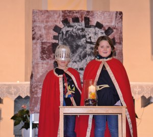 In einem ökumenischen Wort-Gottesdienst mit dem evangelischen Pfarrer Beck und dem katholischen Kaplan Acholonu feierten die Kitakinder und Grundschulkinder mit ihren Eltern den Martinstag. Sehr viele Kinder waren gekommen. Die Kita Herz Jesu hatte ein Spiel mit Musik vorbereitet, bei dem auch die Kleinsten erfahren konnten, dass Martin mit einem frierenden Bettler seinen Mantel geteilt hat. St. Martin ist ein Vorbild für alle, die in Not geratenen Menschen helfen.