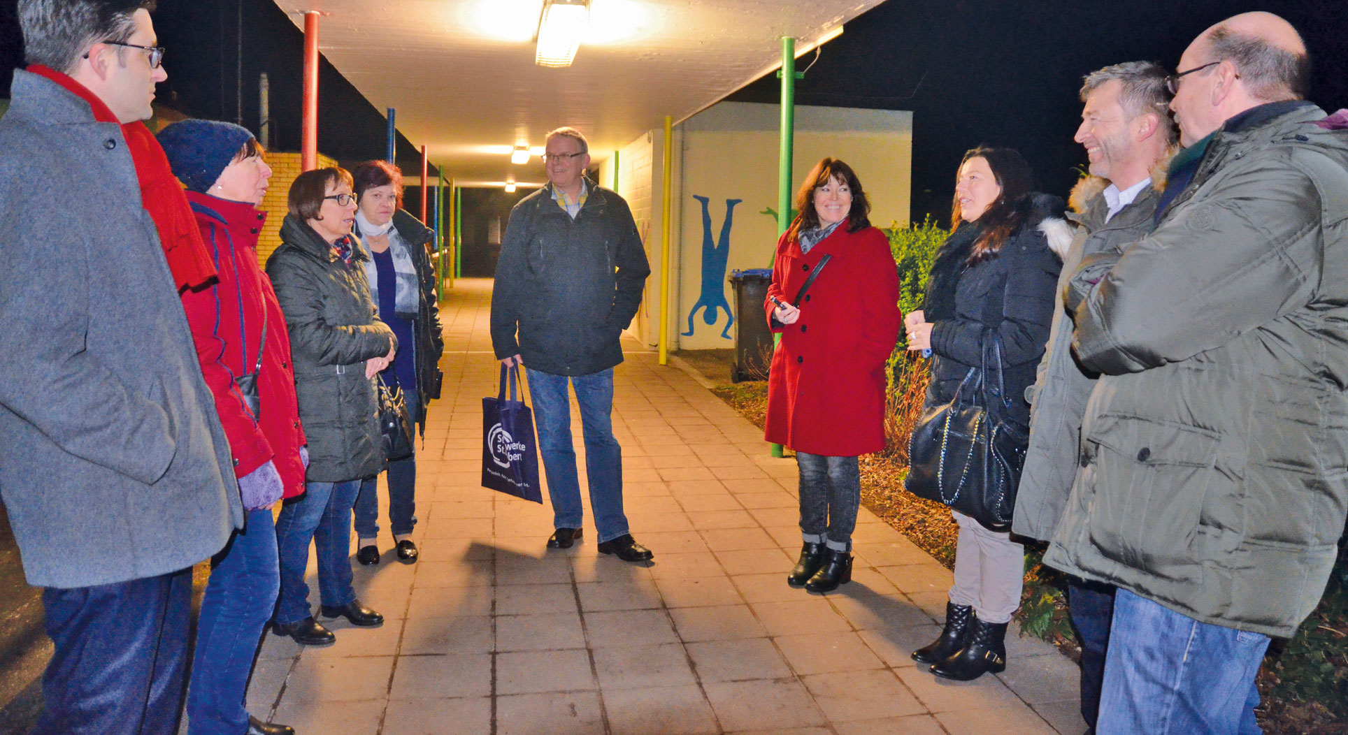 Folgende Themen stehen auf der Tagesordnung: Besichtigung der Einhausung des Toilettentraktes, Stand Sporthein und Beleuchtung alte Schulturnhalle, Budget, Begrünung der Schulstraße.