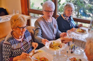 Den Mittagstisch 60plus der evangelischen Pfarrgemeinde Hassel gibt es seit dreieinhalb Jahren. Er findet jeden Mittwoch statt, es nehmen im Schnitt 60-70 Personen daran teil. Zirka 15 ehrenamtliche Helfer sorgen für das Mittagessen, bereiten den Raum vor, teilen das Essen aus und waschen das Geschirr. Vor der Mahlzeit wird immer gemeinsam mit dem Pfarrerehepaar gebetet oder gesungen.