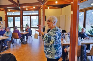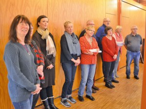 Am 21. Dezember gab es eine kleine Weihnachtsfeier, in der Pfarrerin Elisabeth Beck die Weihnachtslieder am Flügel begleitete und Pfarrer Alexander Beck erwärmende Worte für die Seniorinnen und Senioren sprach. Unterhaltung wird immer groß geschrieben. Pfarrer Beck überreichte im Namen der Pfarrgemeinde jedem Besucher und Helfer eine Weihnachtskugel mit dem Aufdruck „Ich bin das Licht der Welt“ (Johannes 8.12). Frau Brengel, die immer am Mittagstisch teilnimmt, überreichte den ehrenamtlichen Helfern ein Präsent der Besucher.
