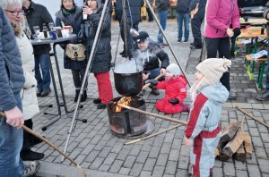 Auf Initiative der Familie Mauchnick fand spontan am heutigen Sonntag ein Wintermeeting in der Goethestraße vor dem Anwesen Mauchick mit Jung und Alt statt. Jeder hatte etwas dazu beigesteuert: Ob Salzgebäck, Kuchen, Kaffee, Kinderpunsch, Glühwein, Bier, eine warme Suppe und vieles mehr. Ein Grill war aufgestellt. Dort hatten die Kids mit Stockbrot ihren Spaß. In dem kleinen Neubaugebiet gibt es allein 12 Kinder. Fotos: Christa Strobel