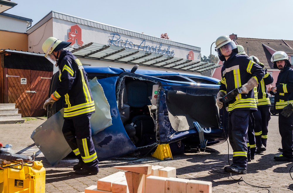 Zu einem Ausbildungsdienst trafen sich Mitglieder des Löschbezirks Hassel am Samstag, den 08. April auf dem Marktplatz. An einem Kleinwagen übten die Feuerwehrangehörigen das Sichern und Stabilisieren von Unfallfahrzeugen in Normal-, Seiten- und Dachlage, des Weiteren konnten diverse Zugangs- und Befreiungstechniken mit verschiedensten Werkzeugen geübt werden.