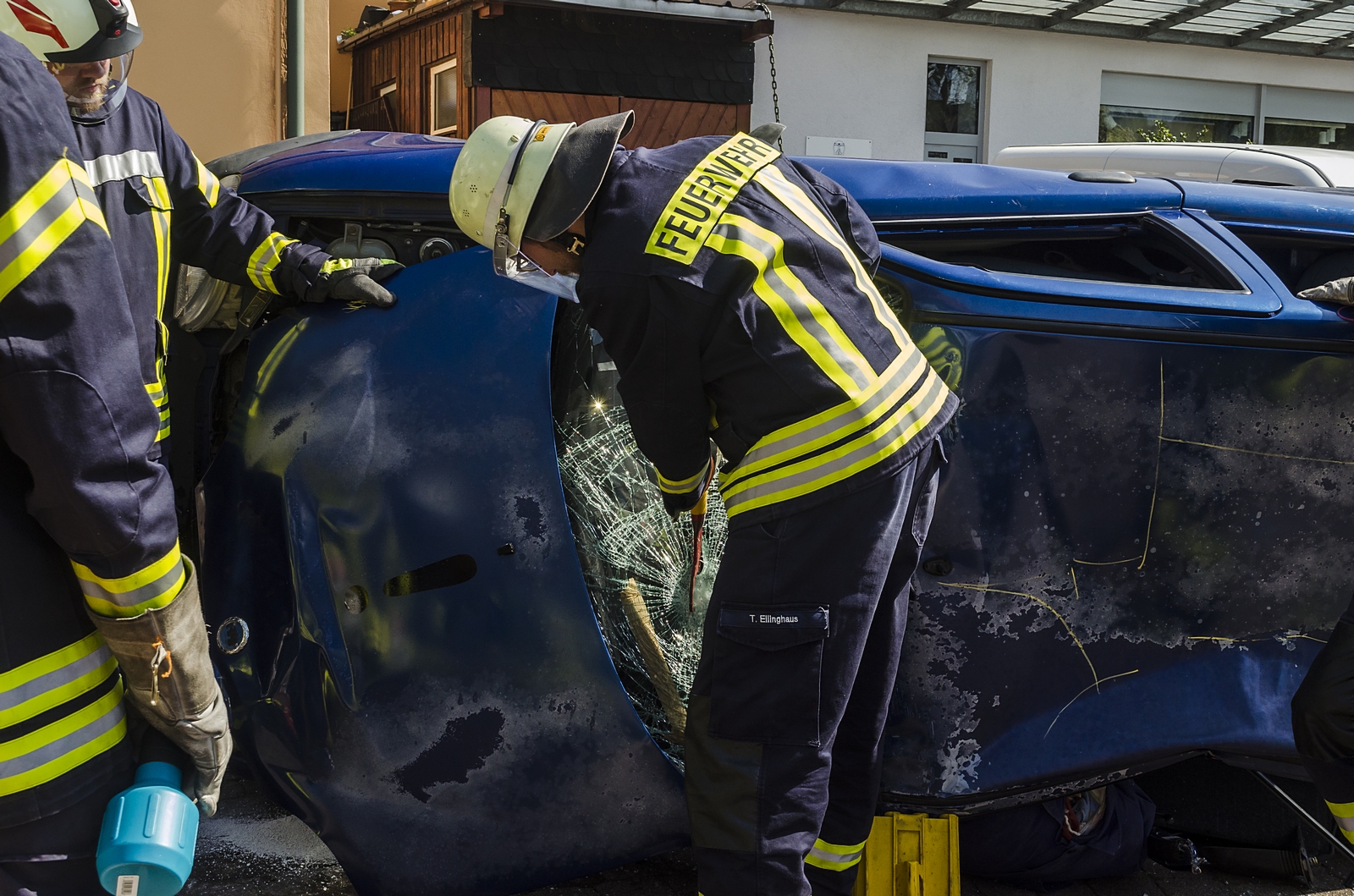 Anschließend wurden verschiedene Zugangs- und Befreiungstechniken ausprobiert. Entgegen der landläufigen Meinung muss zur schonenden bzw. achsengerechten Befreiung des Patienten das Dach des Fahrzeuges nicht immer entfernt werden. Einerseits bringt dies den Rettungskräften den größtmöglichen Platzgewinn für die achsengerechte Rettung der eingeklemmten Insassen, andererseits dient das Dach auch dem Schutz des Patienten gegen Auskühlen, Niederschlag, Arbeitslärm und auch vor Schaulustigen und durch die in modernen Fahrzeugen verbauten hochfesten Säulen, verklebten Scheiben und versteckten Sicherheitskomponenten in den Holmen wird das Entfernen des Daches immer kraft- und zeitaufwändiger. Hier sollte durch den Einsatzleiter eine kritische Abwägung der Vor- und Nachteile erfolgen und es darf nicht generell von der Entfernung des Daches ausgegangen werden.