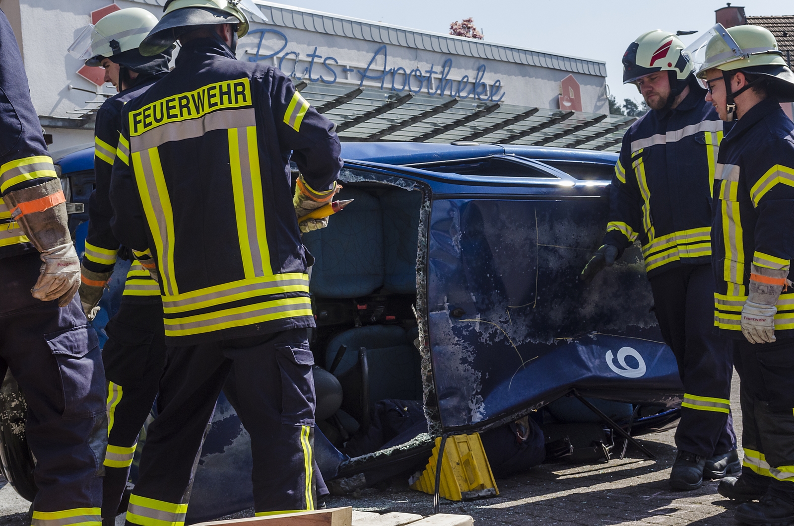 Zu einem Ausbildungsdienst trafen sich Mitglieder des Löschbezirks Hassel am Samstag, den 08. April auf dem Marktplatz. An einem Kleinwagen übten die Feuerwehrangehörigen das Sichern und Stabilisieren von Unfallfahrzeugen in Normal-, Seiten- und Dachlage, des Weiteren konnten diverse Zugangs- und Befreiungstechniken mit verschiedensten Werkzeugen geübt werden.