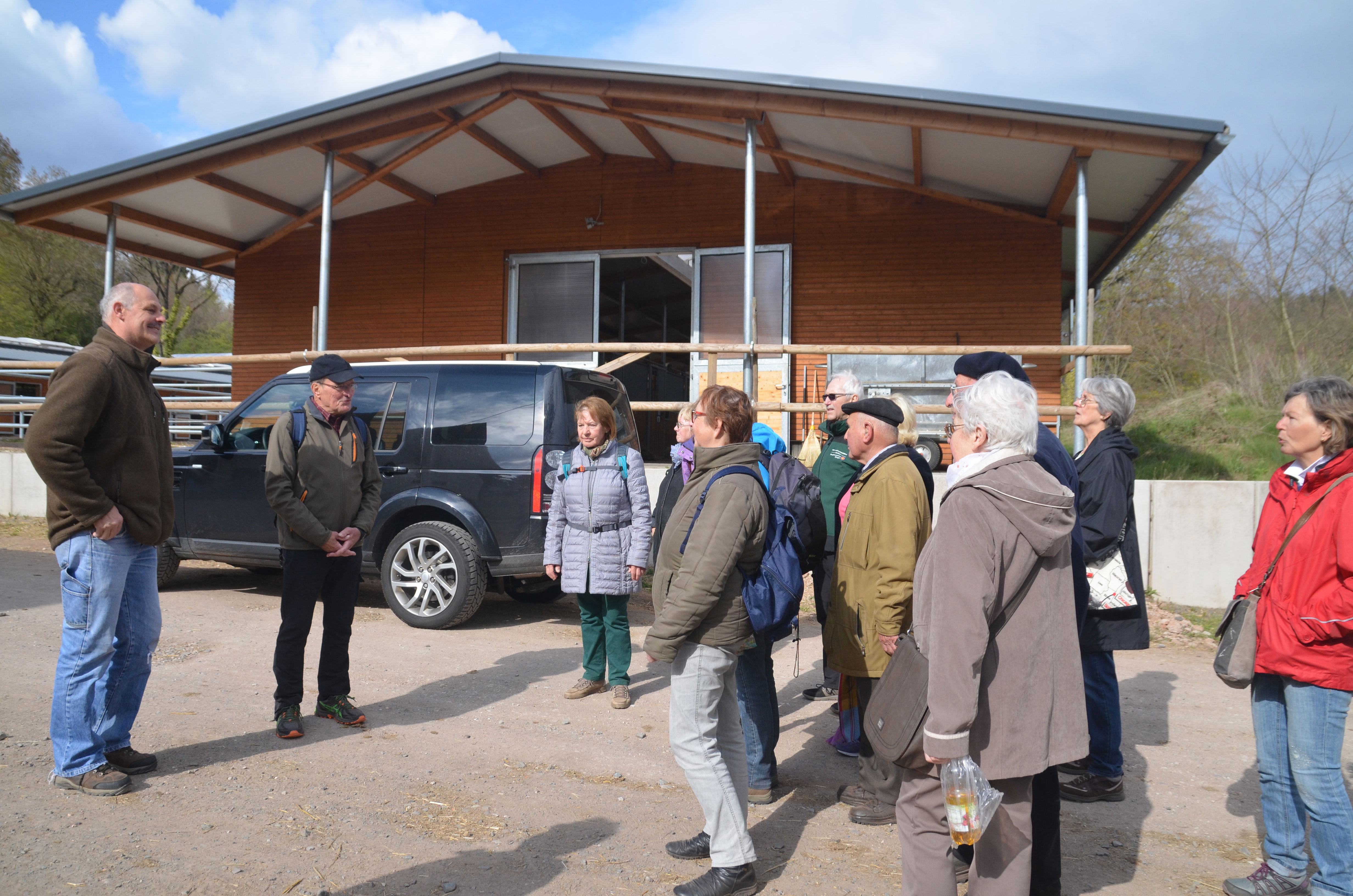 Auf dem idyllisch gelegenen Triebscheider Hof, der 2011 von Gerd Kolb übernommen wurde, staunten die Teilnehmer der Höfewanderung über die Entwicklung des Hofes. Neben den alten sanierten Stallungen sind sehr viele in Eigenleistung neu errichtet worden, sehr komfortabel, viel Platz in den Boxen, mit sanitären Anlagen wie Duschbecken und Abspritzplätzen für Pferde, direkt in der Halle, geplant nach modernsten Erkenntnissen für artgerechte Tierhaltung. Es wurde an nichts gespart. Alle Hallen, eingepasst in die Naturlandschaft, sind lichtdurchflutet und gut durchlüftet, die Pferde stehen auf Bitumenmasse und Stroh.