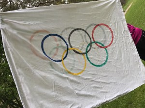 Die Kinder hatte für den besonderen Anlass eigens eine olympische Fahne gemalt.