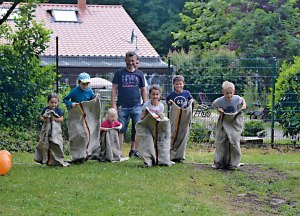 Bei strahlendem Sonnenschein war das Sommerfest des CDU-Ortsverbandes Hassel im idyllisch gelegenen Fröschenpfuhl sehr gut besucht. Schon um 13:30 Uhr gab es keinen Schwenkbraten mehr, aber immer noch Erbsensuppe mit Wurst. Am Nachmittag stand Kinderbasteln mit Margit Rinck und Bärbel Derschang auf dem Programm. Im Anschluss daran war für die Kinder unter Leitung von Dr. Michael Rinck und Uwe Herold sowie Fabian Hauck Seilziehen, Luftballonwettlaufen und Sackhüpfen angesagt. Ortsvorsteher Markus Hauck ließ es sich nicht nehmen, sich mit dem Kandidaten des CDU-Wahlkreises Saarpfalz-Neunkirchen, Markus Uhl, beim Sackhüpfen zu messen. Staatssekretär Dr. Ulli Meyer und Dr. Frank Breinig, CDU-Fraktionsvorsitzender im Stadtrat, besuchten das Fest.