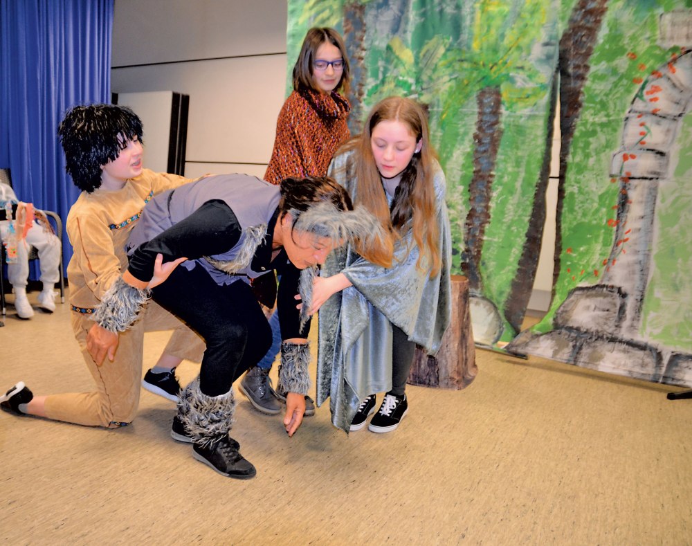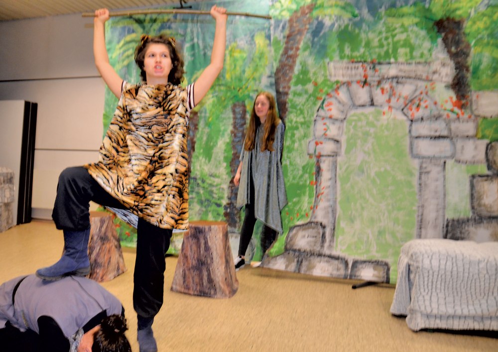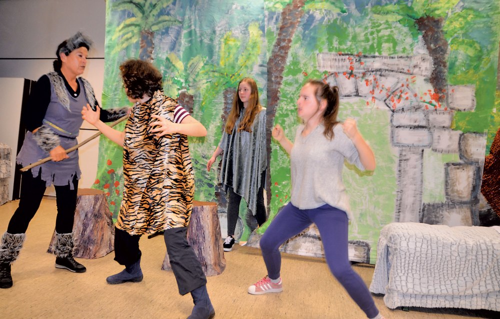 Das Dschungelbuch gibt es in vielen Versionen. Diese Aufführung jedoch gleicht keiner der gängigen Versionen, weil die Dialoge, Liedtexte (Christa Strobel) und die Musik (Frank Hahnhaußen) selbst verfasst wurden. Aber nicht nur die Kleinen, das Theaterteam besteht aus Kindern (ab 8 Jahren) und Jugendlichen bis 17 Jahre, außerdem wirken vier Erwachsene mit. Da die VHS-Darsteller auch singen, und das zusammen mit dem Unterstufenchor des AMG, gab es gemeinsame Proben.