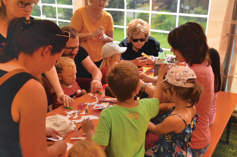 Die Erbsensuppe, zubereitet von Norbert Schmelzer und Dieter Strobel, war sehr gelungen und gefragt, ebenso der Schwenkbraten mit Kartoffelsalat nebst Rostwürsten; auch vom selbst gebackenen Kuchen, organisiert von Hildegard Schneider, war kein Stück mehr übrig. Gegen 15 Uhr organisierte Michael Rinck das Sackhüpfen und das Luftballonspiel. Verschiedene Altersgruppen traten gegeneinander an und wurden mit Spielzeug oder Süßem belohnt. Margit Rinck bastelte mit den Kleinen im Zelt, die es lieber etwas weniger sportlich angingen. Für jeden war etwas zum Unterhalten und Ablenken da. Bis in den späten Abend war der Bierstand belagert.