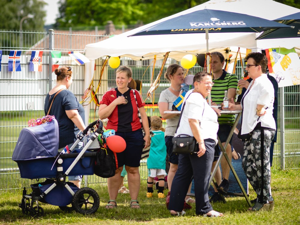 Derzeit fiebert alles der Fußball-WM entgegen, daher lag es nahe, das diesjährige Sommerfest der ev. Kita Sonnenblume ebenfalls dem Thema Fußball zu widmen…Die großen und kleinen Gäste erwartete auf dem Spielfeld der SG Hassel und dem Schulgelände der Pestalozzischule Dependance Hassel ein Fahnenmeer und jede Menge schwarz-rot-goldene Ballons.