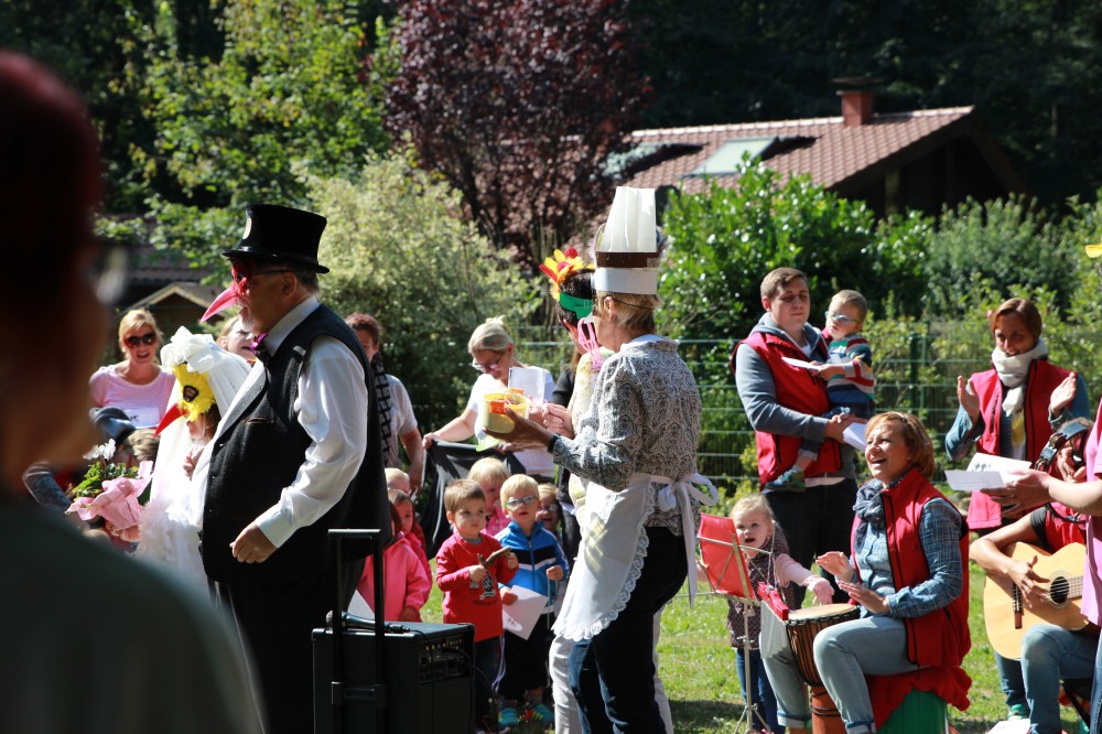 Der Höhepunkt der Feier im Fröschenpfuhl war die Aufführung der „Vogelhochzeit“, bei der einige der Großeltern selbst als Darsteller mitwirkten und ein Chor aus Großeltern mit ihrem „Fideralala“ für die passende musikalische Untermalung sorgte.