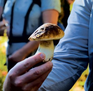 Zunächst erläuterte er die Funktion der Pilze in der Natur, dann erklärte er an den mitgebrachten Pilzen wie beispielsweise Rotfußröhrling, Perlpilz, Kartoffelbovist, Fliegenpilz, Steinpilz, Parasolpilz, Safranschirmling und Riesenschirmling oder dem rosablättrigen Helmling, dass man sie an Aussehen und Geruch erkennen könne, was er überprüfen ließ. Pilze dürften im Wald nicht mit der Wurzel herausgerissen werden, bei der Zubereitung müsse man wegen des Fuchsbandwurms auf eine Mindestzubereitungszeit von 15 Minuten und 60 Grad achten.