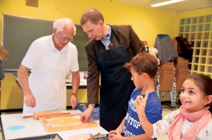 Staatssekretär hilft in der Eisenbergschule Plätzchen backen