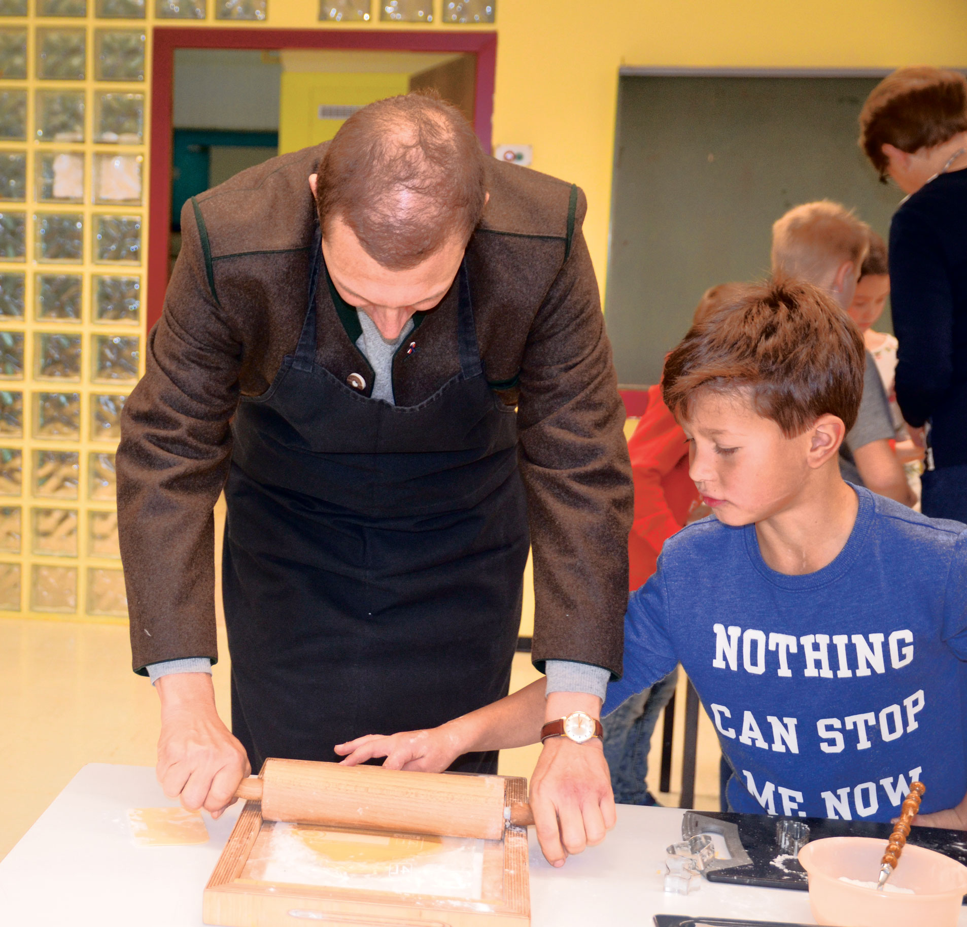 Staatssekretär hilft in der Eisenbergschule Plätzchen backen