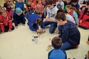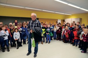 Schulleiterin Nadine Müller hatte alle Schüler der Schule im Kombiraum versammelt, die vier besten Rechner durften mit Ulli Meyer die verplombte Dose öffnen und zählen. Alle freuten sich riesig, dass 409,55 Euro, für die Kinder ein enorm große Summe, in der Sammeldose waren und dass sie damit behinderten Kindern helfen konnten. Klaus Port gab bekannt, dass die gesammelte Summe als Zuschuss für ein Leihfahrzeug für ein schwerstbehindertes Kind verwendet werde, das seine Therapiestunden wahrnehmen müsse. Der Schirmherr sprach allen Kindern ein großes Lob aus. Die Schulleiterin nutzte die Gelegenheit, um das Wochenmotto bekanntzugeben: „Wir achten diese Woche besonders auf Höflichkeit und Freundlichkeit gegenüber den Mitmenschen.“