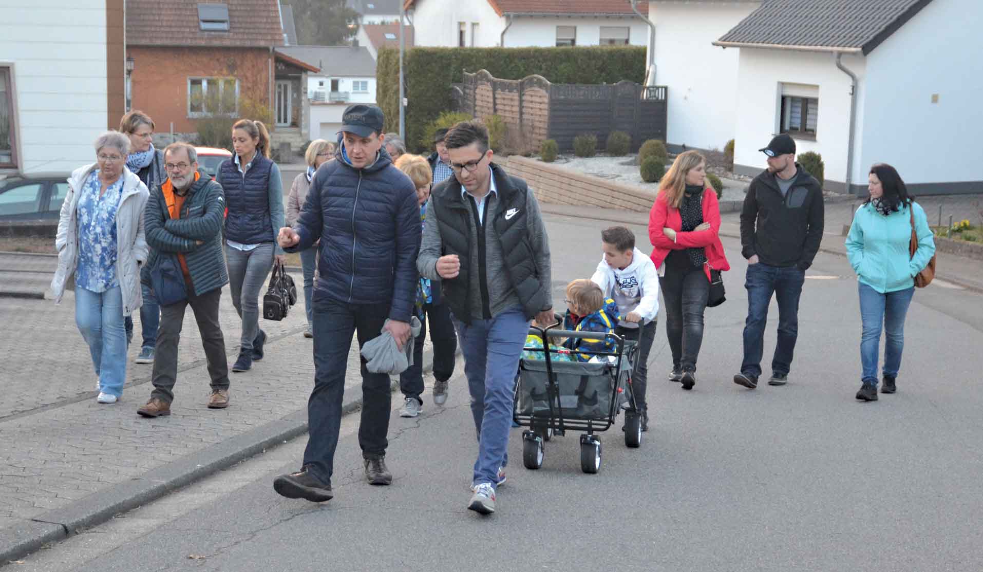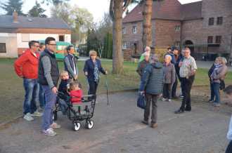 Die Spendenvergabe ist immer mit einem Helferessen und einer Frühjahrswanderung verbunden, bei der vor Ort über die aktuellen Ereignisse in Hassel informiert wird. Dieses Jahr führte Vorsitzender Michael Rinck die Wanderer zunächst zur Kita Herz Jesu, wo schon der Bagger steht, um am Montag das alte Gebäude abzureißen. Das dauert etwa 14 Tage, dann geht es Hand in Hand mit dem Neubau. „Wir hoffen, dass alles im Plan bleibt und wir in eineinhalb Jahren einziehen können“, so Diana Steinberger in Vertretung der Kitaleiterin. „Für den Neueinzug ist ein neues Aquarium geplant, denn das alte ist in die Jahre gekommen; dafür wird die Spende verwendet werden. Denn das Aquarium ist für die Kinder, wenn sie kommen, immer ein Magnet, der hilft, sich morgens von den Eltern zu trennen.“