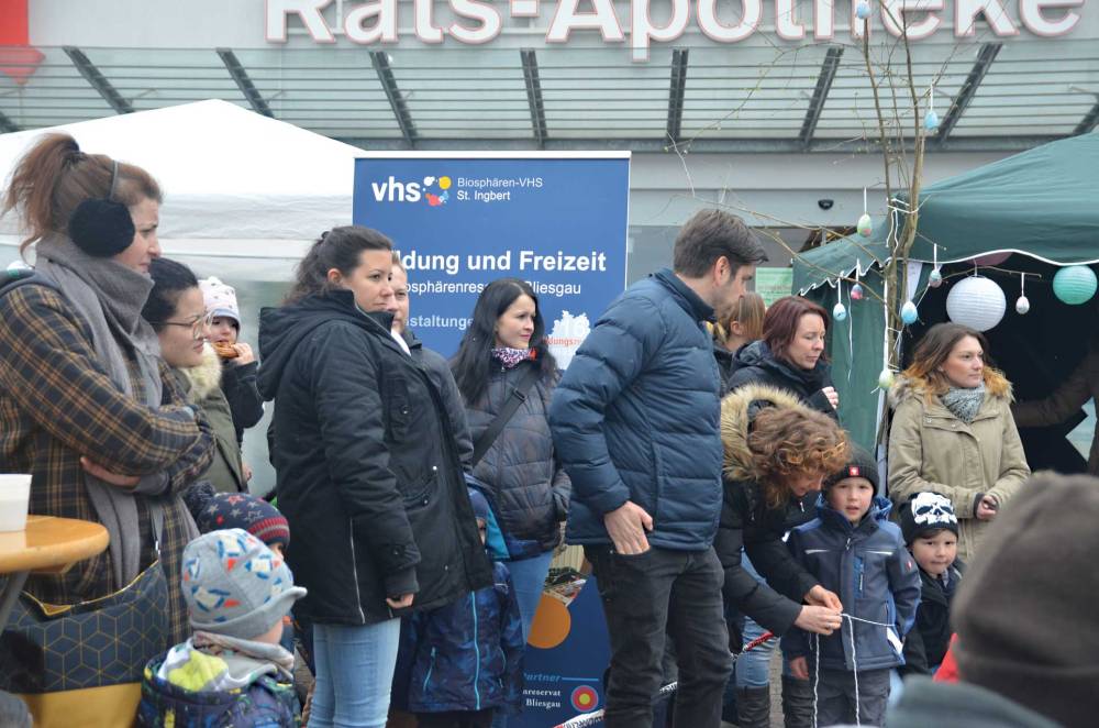 Monika Conrad (Stadt St. Ingbert) hatte sich viel Mühe gegeben mit der Vorbereitung, viele attraktive Aussteller waren da, aber die Tische und Bänke blieben leer, es war viel zu kalt für einen Kuckucksmarkt Anfang April. Die Anbieter froren, es war grenzwertig, wenn man die ganzen Tag in seinem Stand stehen musste. Die VHS Hassel bot ihre neues Programm, an Kursen Töpfern und Nähen mit ihren Produkten an. Nächstes Jahr wollen auch die vhs-Männerköche mit Dozent Fred Körner mitmachen. Sie haben Dibbelabbes geplant. Erst am Nachmittag, als sich die Sonne kurz zeigte, kamen noch einige Besucher. Dennoch waren viele mit dem Verkauf zufrieden. Es bleibt die Frage, ob der Biosphärenmarkt in einer Zeit stattfinden muss, wo mit solchen Wetterkapriolen zu rechnen ist!