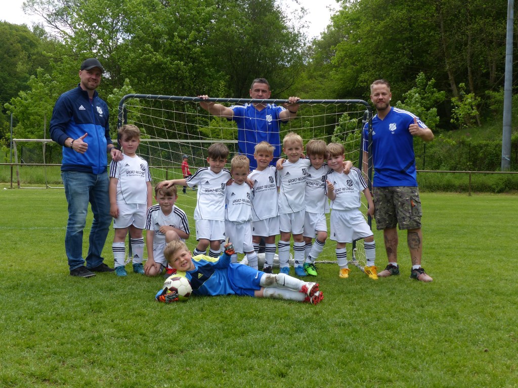 Zufrieden blicken auch die Trainer Sven Reidenbach bei der F-Jugend und Martin Heckel, Shaque Halilaj und Sebastian Jung bei der G-Jugend auf die abgelaufenen Saison zurück.