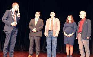 Er betonte, dass er Wert auf eine ehrliche, sachliche Zusammenarbeit mit den Mitarbeitern der Verwaltung, dem Stadtrat, den Ortsvorstehern und den Ortsräten legt, unter Berücksichtigung demokratischer Prinzipien. Es soll stets hinterfragt werden, welchen Nutzen Ideen, Anregungen, Maßnahmen für die Stadt bringen; eine Entscheidung soll getroffen werden immer im Zweifel für die Bürger, für die Vereine und für die Unternehmen. Ein Herzensanliegen ist dem neuen OB, dass ausreichend und qualitativ gut eingerichtete Kitas und gut eingerichtete Grundschulen in St. Ingbert vorhanden sind. Menschlichkeit und Herz sollte die Zusammenarbeit prägen. Er stellte drei Fragen, auf die er erläuternd einging: Woher kommen wir? Wo stehen wir? Wohin wollen wir? Den ganzen Tag besuchte er St. Ingberter Einrichtungen und traf sich mit vielen Bürgern. Fast die gesamte CDU-Stadtratsfraktion war bei der Amtsübergabe anwesend. Fotos: Christa Strobel