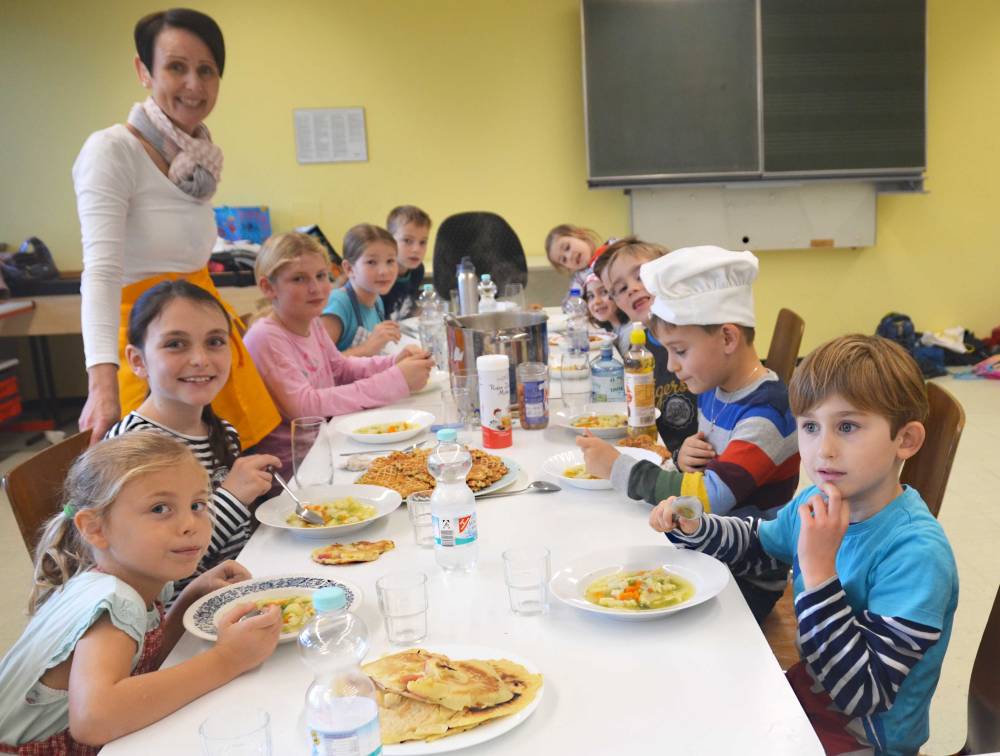 Mit Gewaltprävention/Selbstverteidigung, Töpfern und Kochen/Backen für Kinder standen heute viele Aktionen auf dem Programm. Beim Kochen gab es Gemüsesuppe, Waffeln und Apfelpfannkuchen. Für den Heimweg gab es noch ein Glas selbst gemachtes Apfelmus. Alle Produkte stammten aus der Biosphäre Bliesgau. Moderne Mülltrennung, Geschirrwaschen und Saubermachen standen ebenso auf dem Programm. Aber auch der Klimaschutz war ein Thema im Zusammenhang mit der Herkunft der Produkte. Eine Anregung nahm die Nebenstelle Hassel gleich auf: ein Väter-Kinder-Kochen am 14.3.2020.