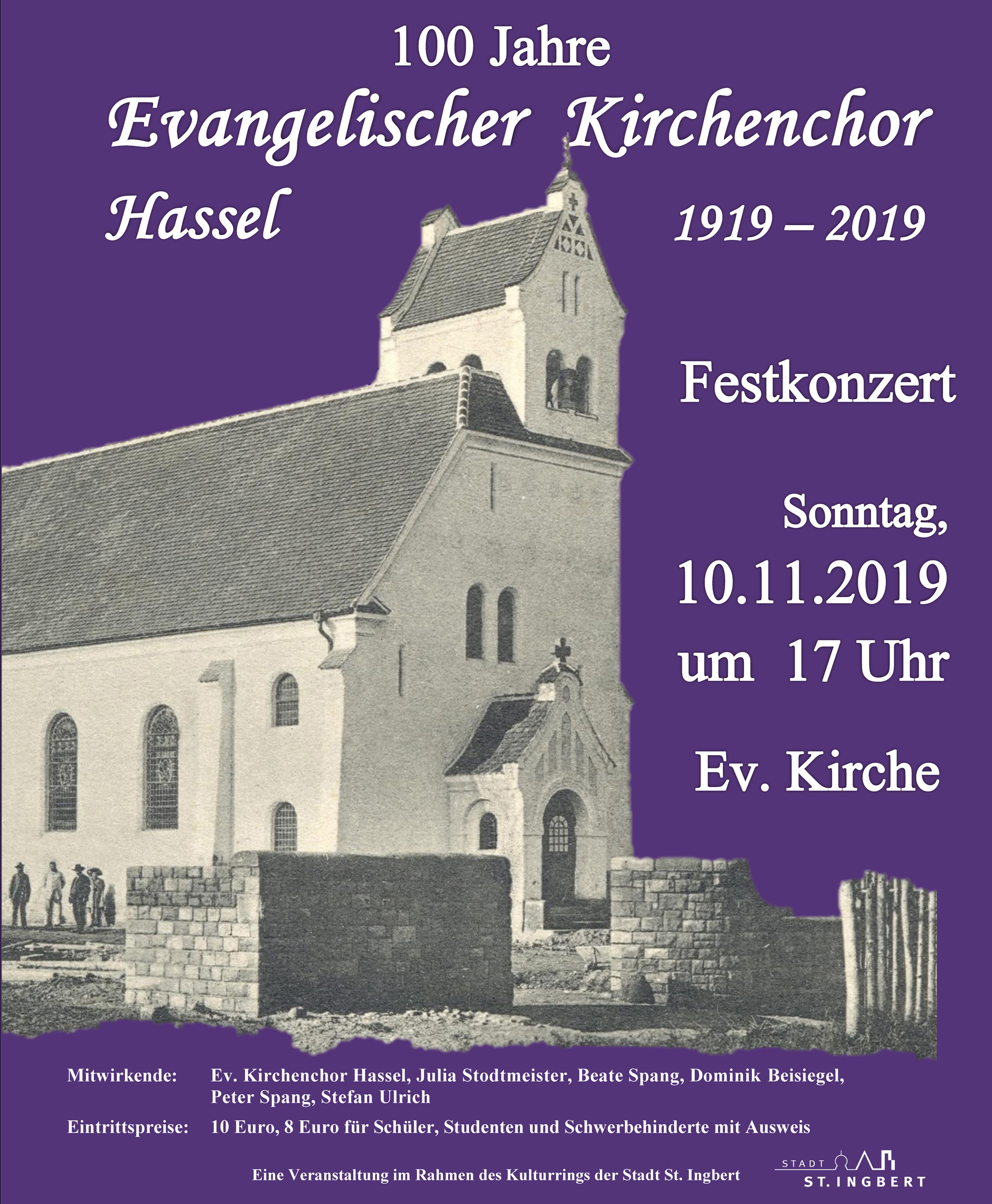 Das Festkonzert des evangelischen Kirchenchores anlässlich der Hundertjahrfeier des Kirchenchores findet am Sonntag, den 10. November um 17 Uhr in der evangelischen Kirche statt.