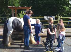 Nach langer Zeit durfte die Veranstaltung der VHS Hassel „Die Begegnung mit dem Freund Pferd“ wieder stattfinden. Gleich 29 Anmeldungen lagen vor, so dass 2 Termine daraus gemacht werden mussten. Auf dem Abenteuergelände von Violas Wunderwald lernten die Kinder die Therapiepferde kennen. Zuerst wird erklärt, wie man sich die Pferd nähert, dann wie man das Tier bürstet oder striegelt. Danns gings zum Reiten. Die Kleinen waren in 3 Gruppen zu je 5 Kinder eingeteilt. Jeder durfte reiten, turnen auf dem Pferd, freihändig jonglieren und mehr. Fotos