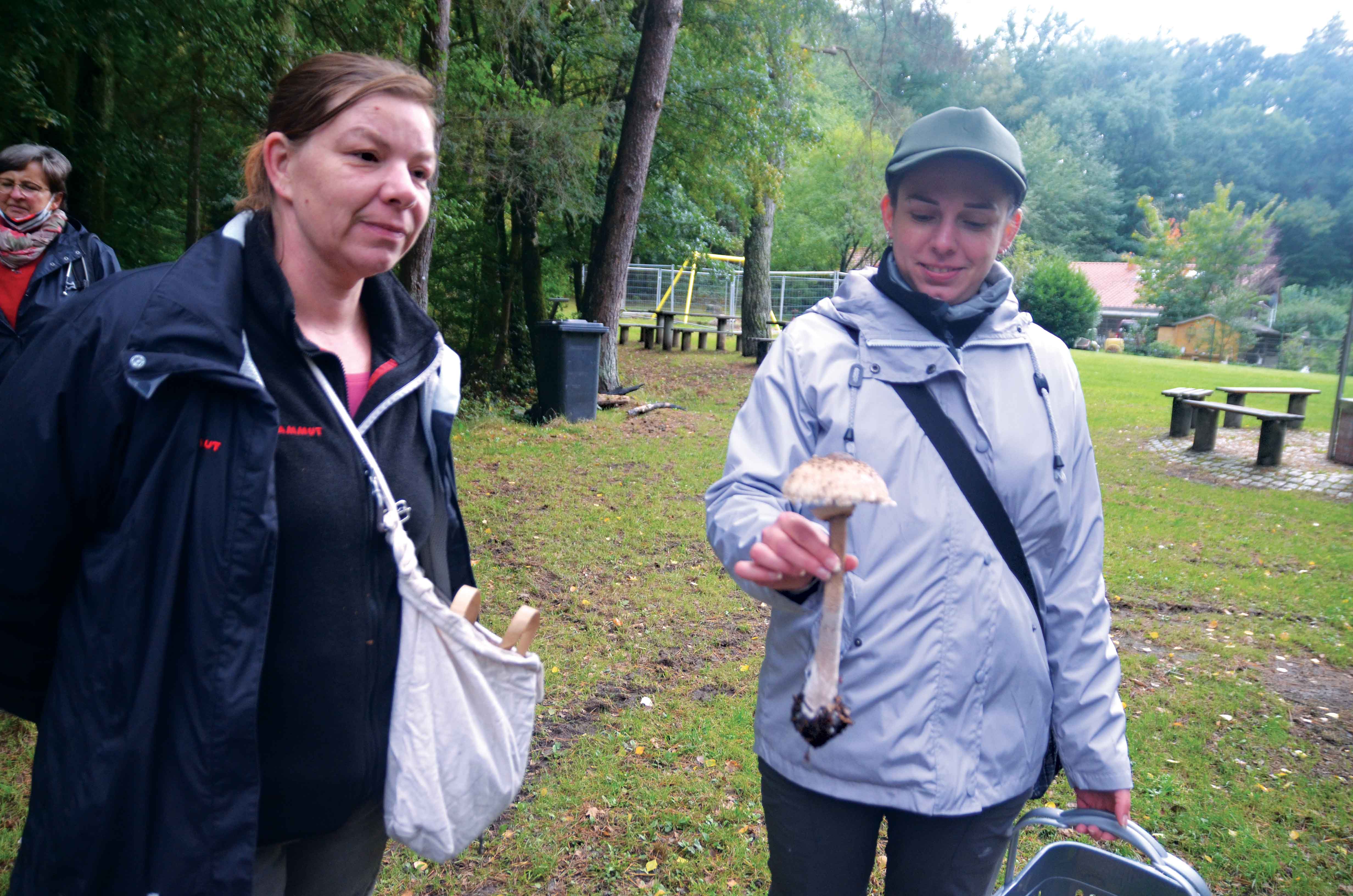 Gefunden wurden viele Riesenschirmlinge, Steinpilze, leider nur falsche Pfifferlinge und viele mehr. Wenn man noch nicht so viel Erfahrung mit Pilzen habe, sollte man die Homepage der Pilzfreunde Saarpfalz zu Rate ziehen. Dort sei eine Liste der Pilzsachverständigen zu finden, die meist kostenlos Auskunft gäben. Mit den Pilz-Apps solle man keine Experimente wagen, diese seien keine Hilfe für Laien. „Meine Pilze“ sei eine relativ gute App, man müsse aber umfangreiche Einzelmerkmale eingeben, dabei merke man, wie schwierig eine Bestimmung mit der App sei. Neu war vielen Teilnehmern auch, dass man mit Pilzen Papier herstellen kann, z.B. mit dem Birkenporling.