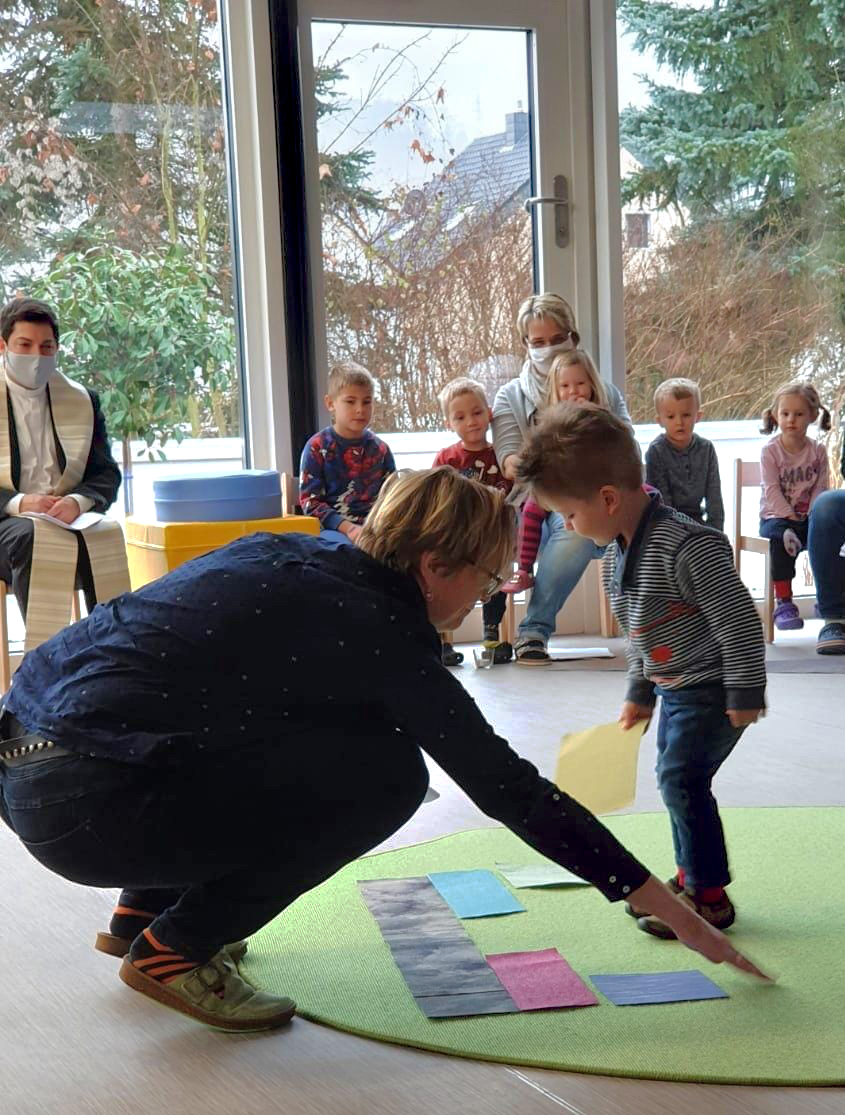 Schließlich wurde die Jesuskerze in der Mitte auf einem roten Herzen platziert, Fürbitten bereiteten die Segnung der Kita durch Pfarrer Alexander Klein vor. Zum Abschluss wurde das Lieblingslied der Kinder gesungen: „Gottes Liebe ist so wunderbar“. Es war ein Erlebnis, das die Kids nicht so schnell vergessen werden, zumal sie als Erinnerung einen Button bekamen. Morgen erfolgt im kleinen Kreis (Corona) die offizielle Eröffnung mit geladenen Gästen.