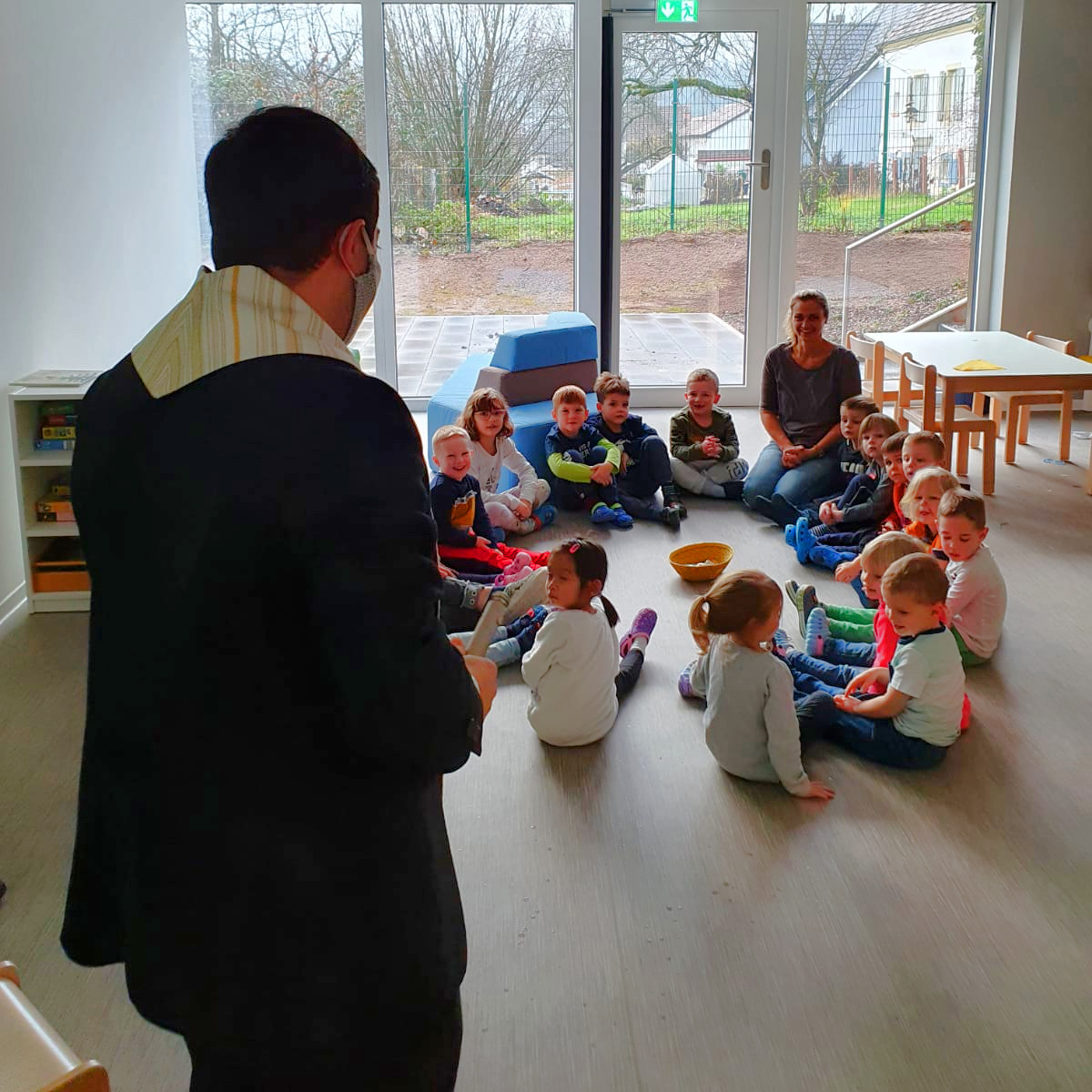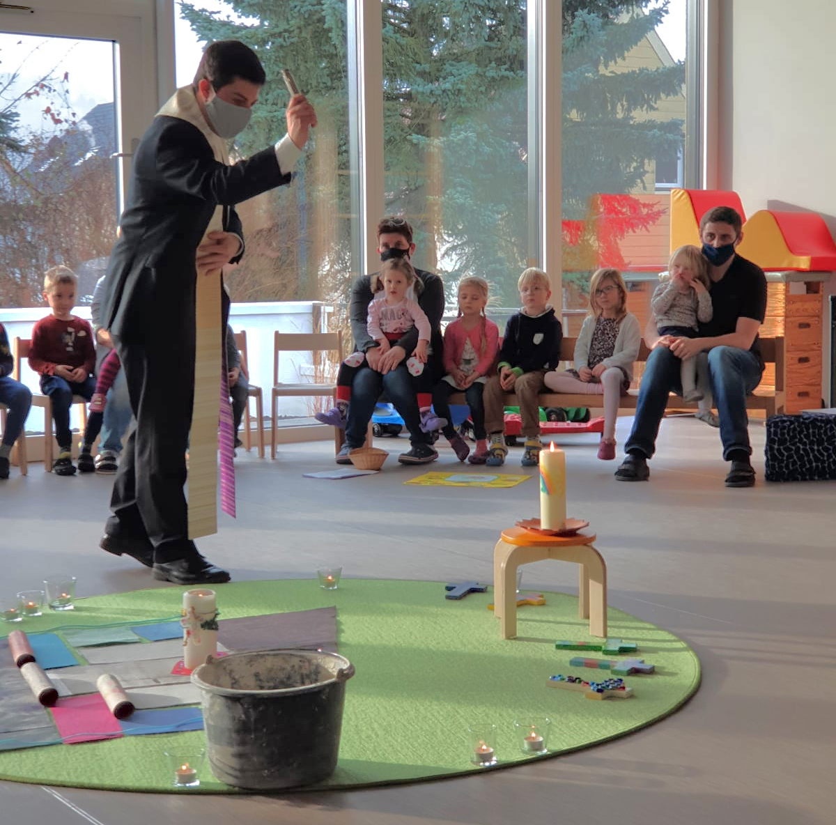 Heute durften Krippen- und Kitakinder die Eröffnung und Einweihung durch Pfarrer Alexander Klein erleben. Es war für Pfarrer Klein, die Erzieherinnnen und Erzieher und vor allem für die Kinder ein ganz besonderer Tag.