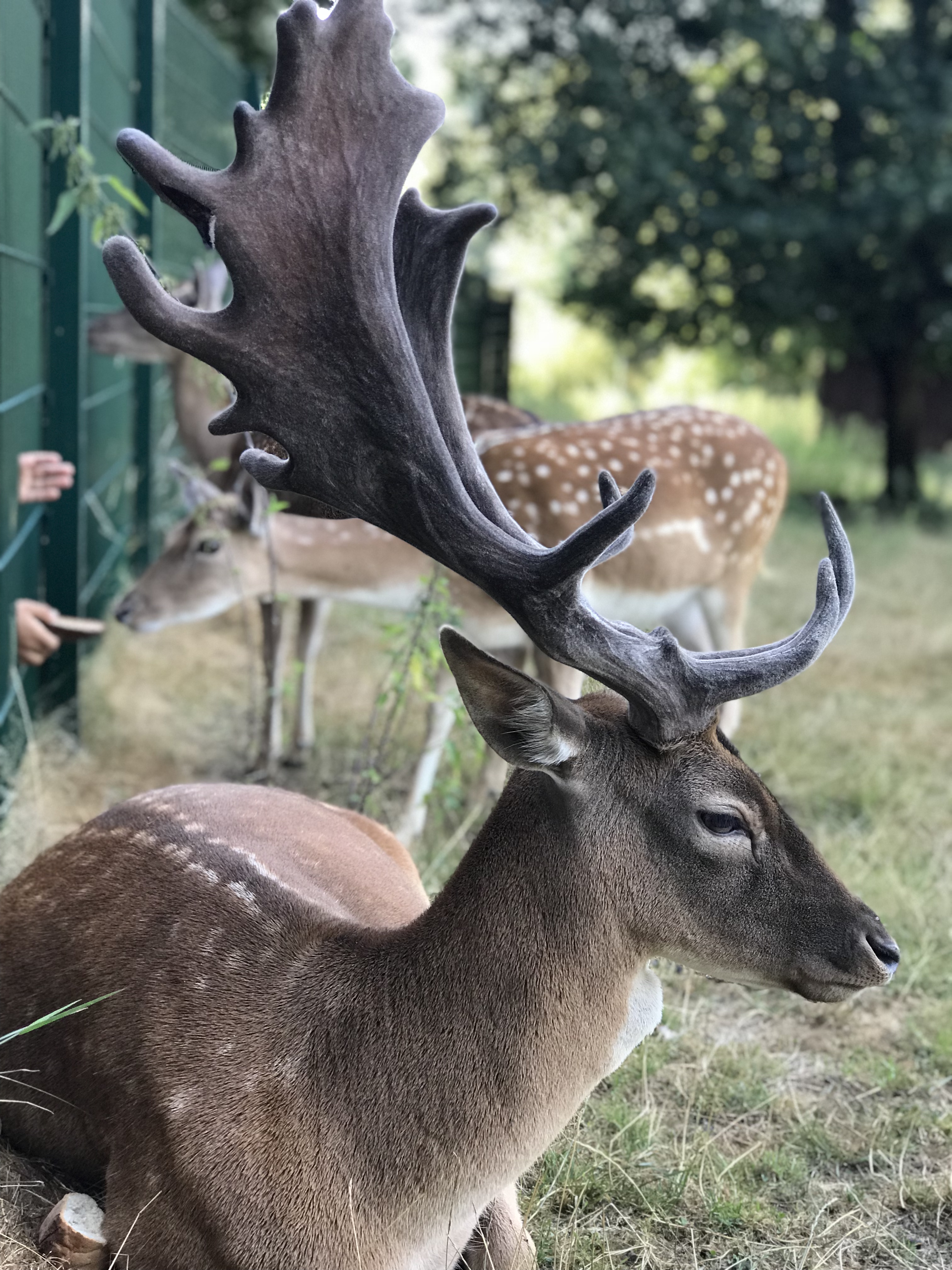 Wenn das Damwild hungrig ist, lässt es sich auch gerne aus der Hand der Kinder füttern. Besonders gerne fressen die Tiere Gemüse und Obstreste. Zur Not findet man auch in einem speziellen Trog Brotreste, die verfüttert werden können.