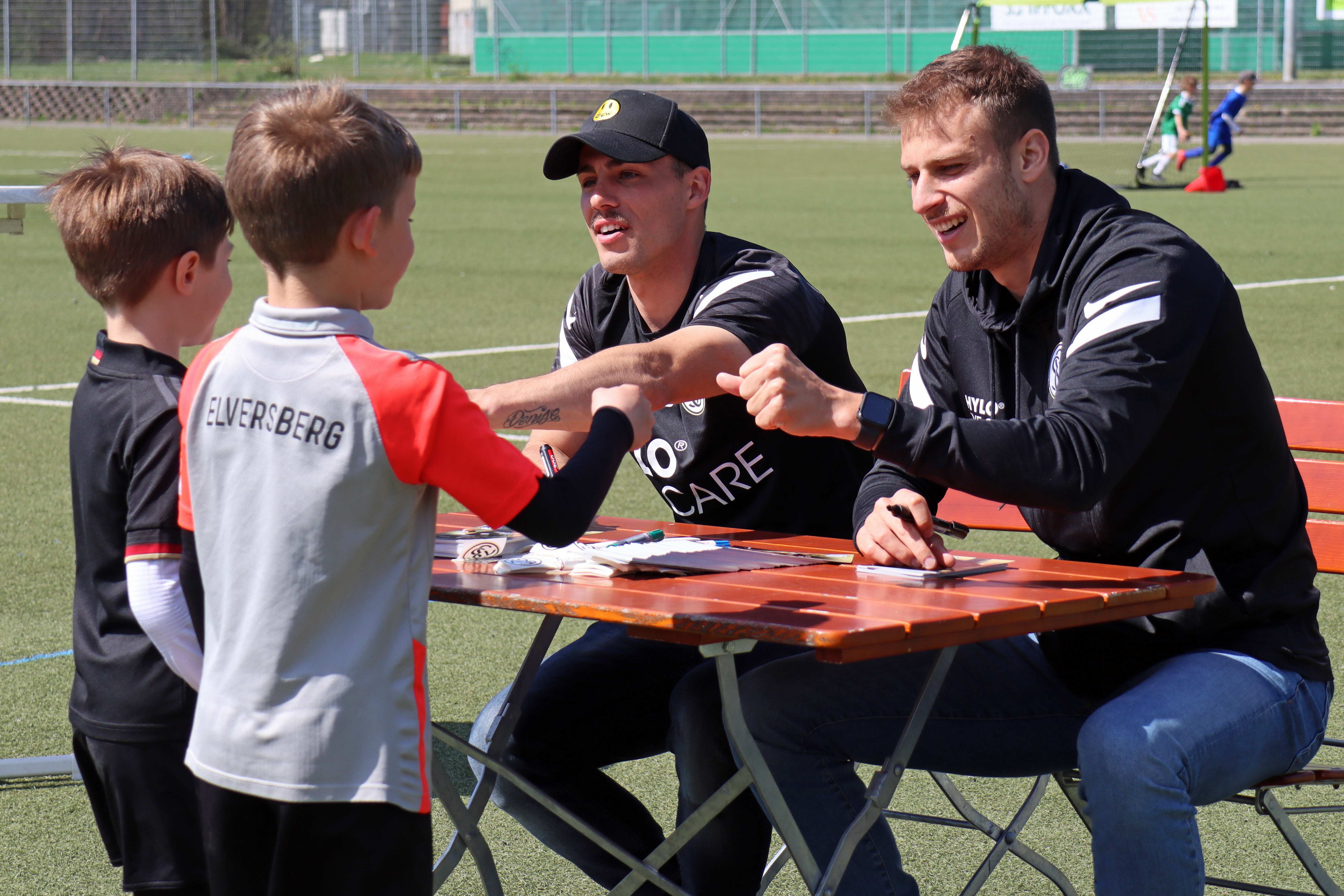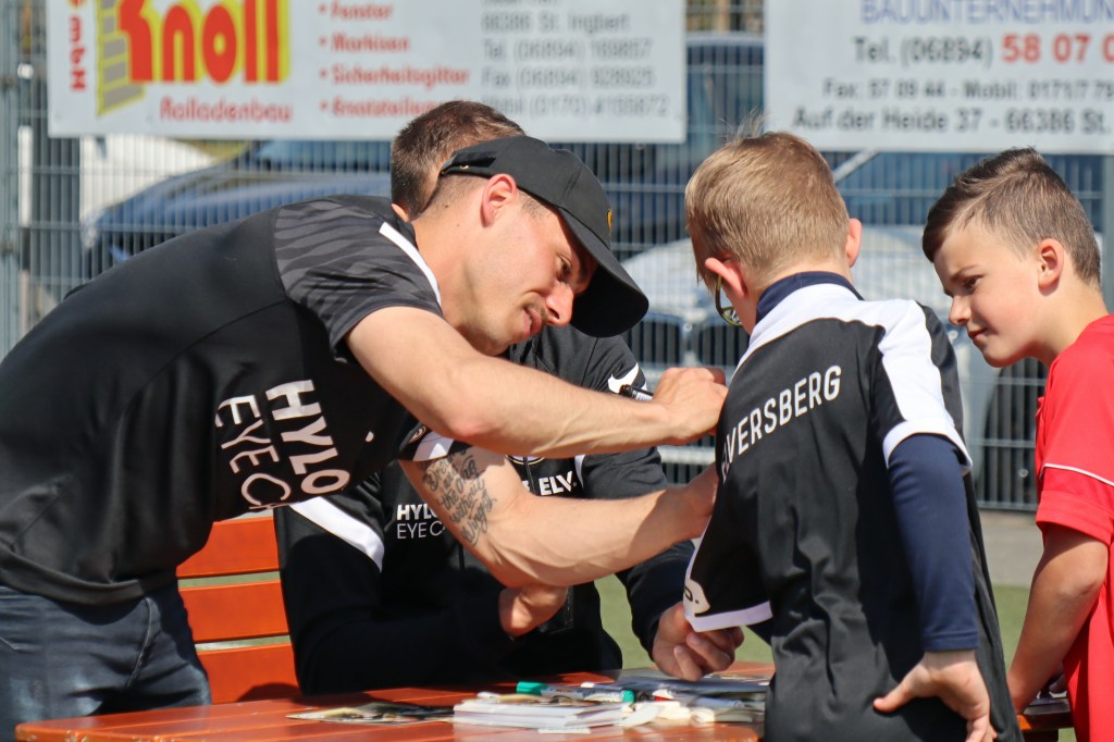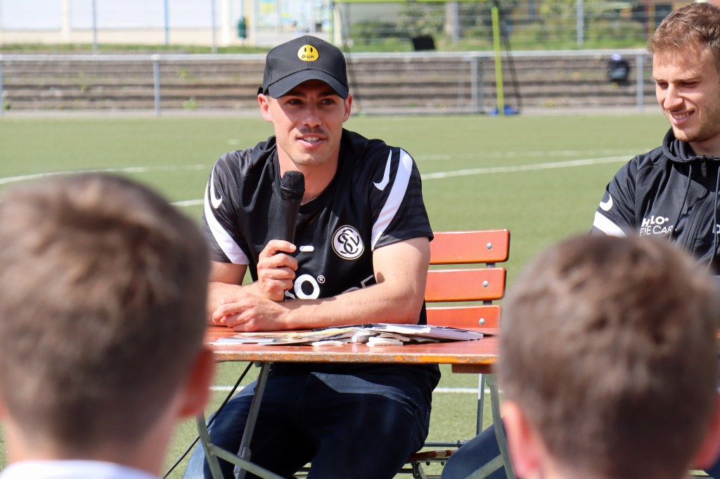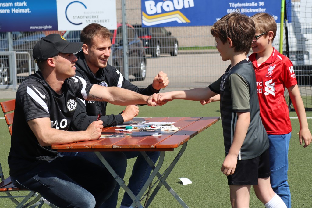 Außerhalb der Trainingseinheiten war am ersten Tag der große Höhepunkt der Besuch der beiden Fußball-Profis von der SV Elversberg, Laurin von Piechowski und Sinan Tekerci.