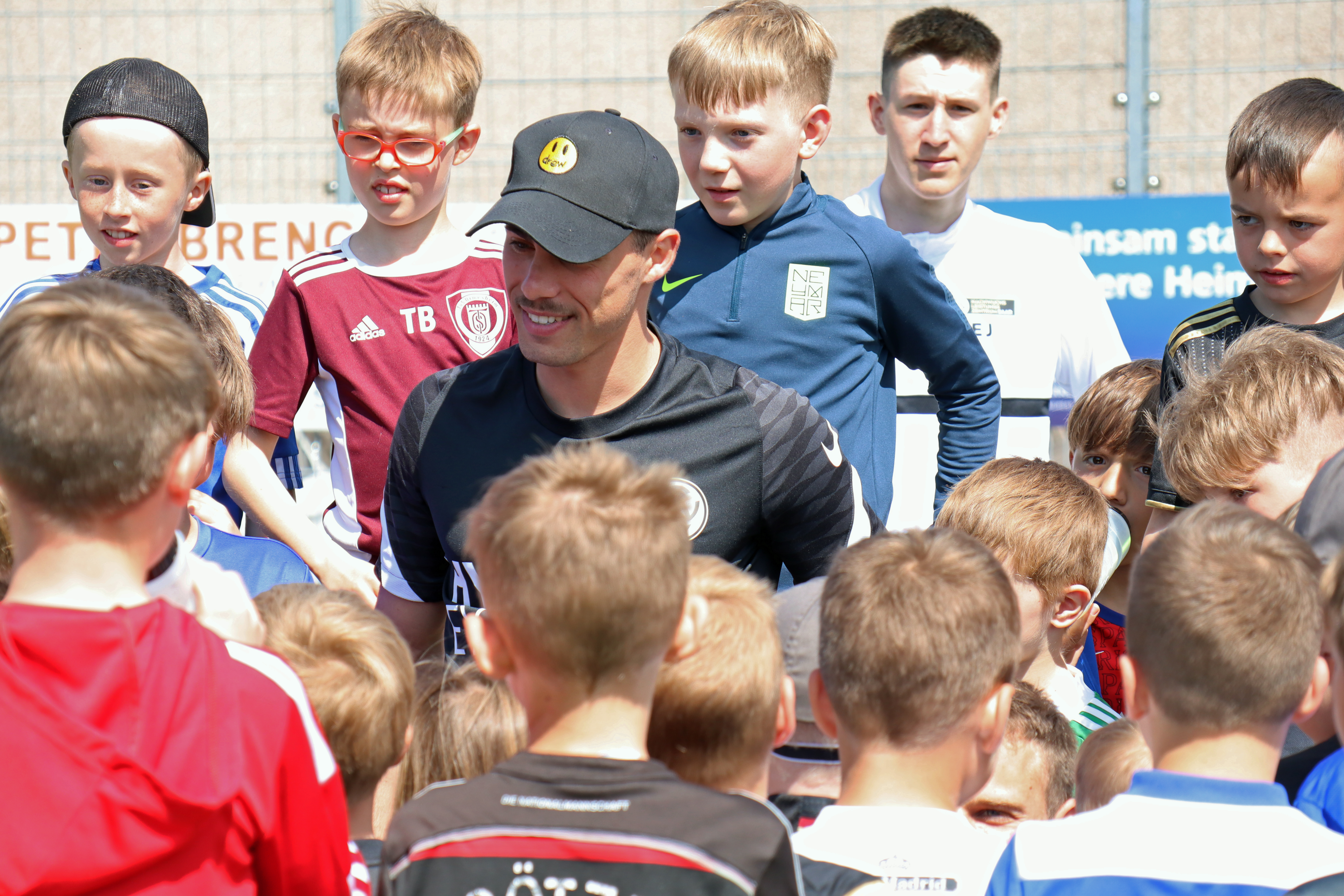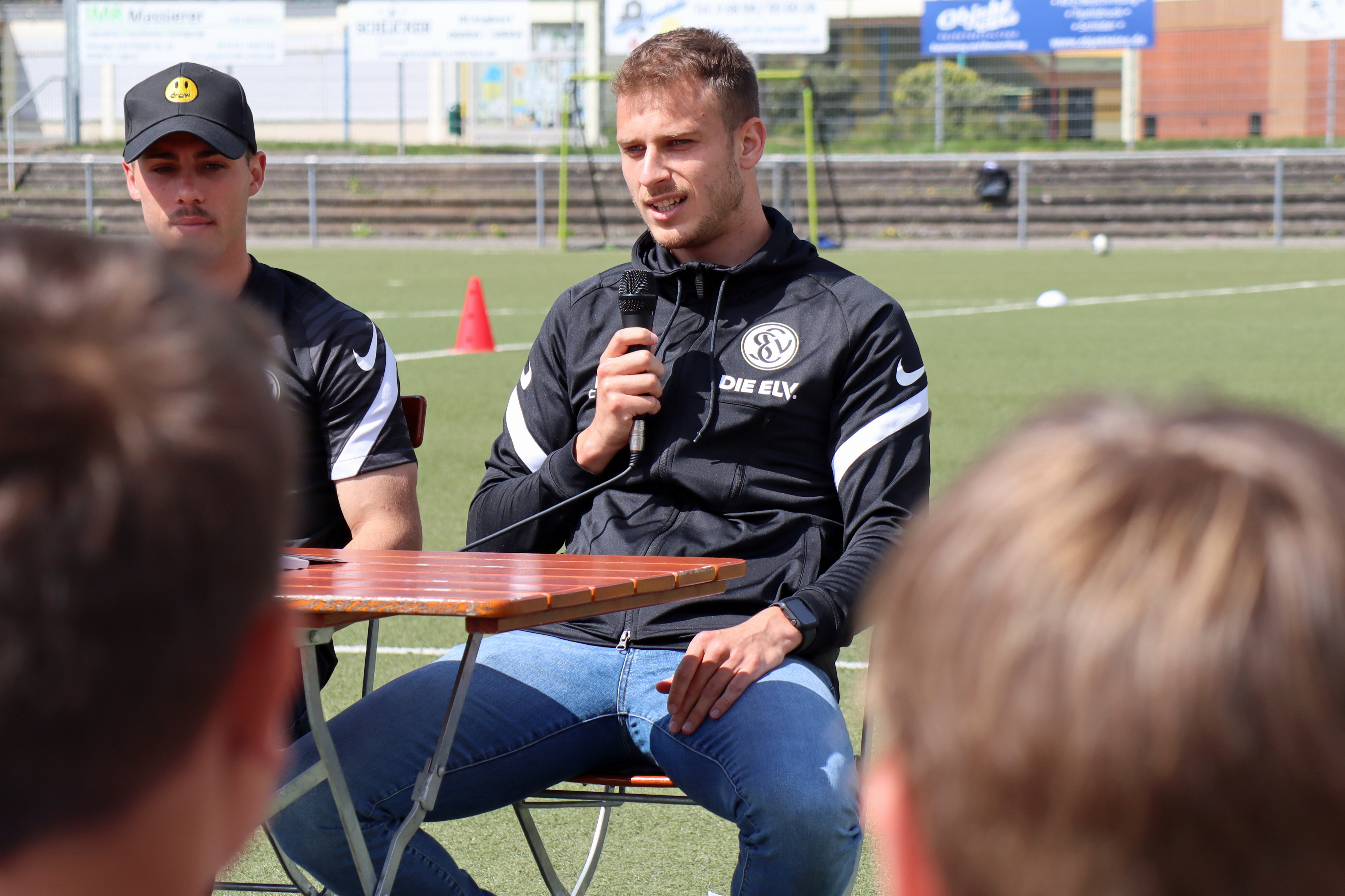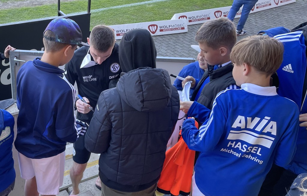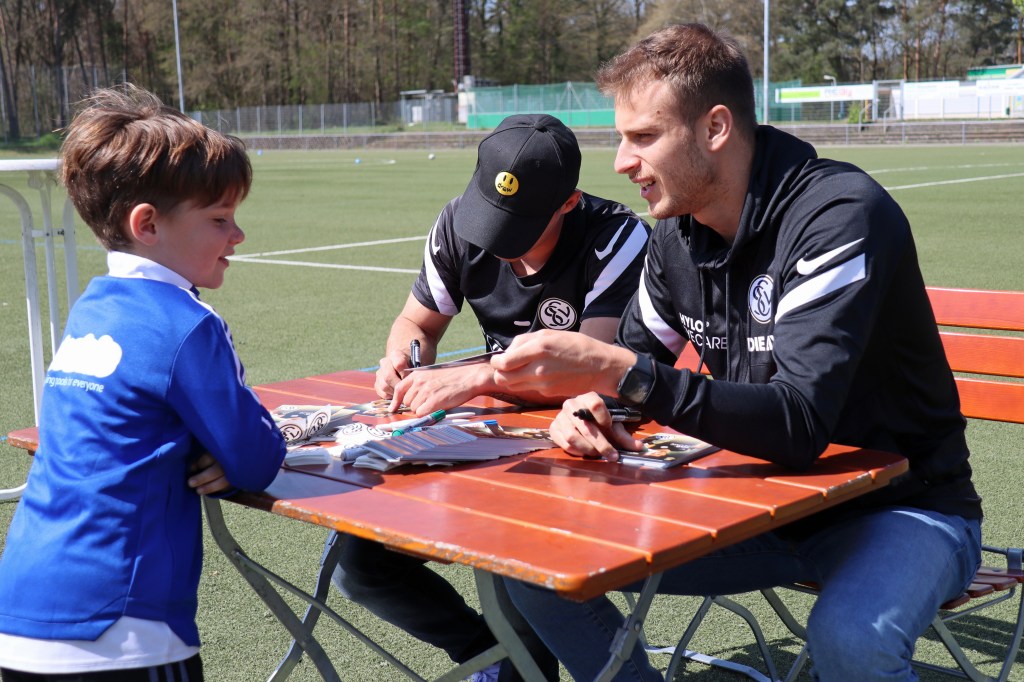 Außerhalb der Trainingseinheiten war am ersten Tag der große Höhepunkt der Besuch der beiden Fußball-Profis von der SV Elversberg, Laurin von Piechowski und Sinan Tekerci.