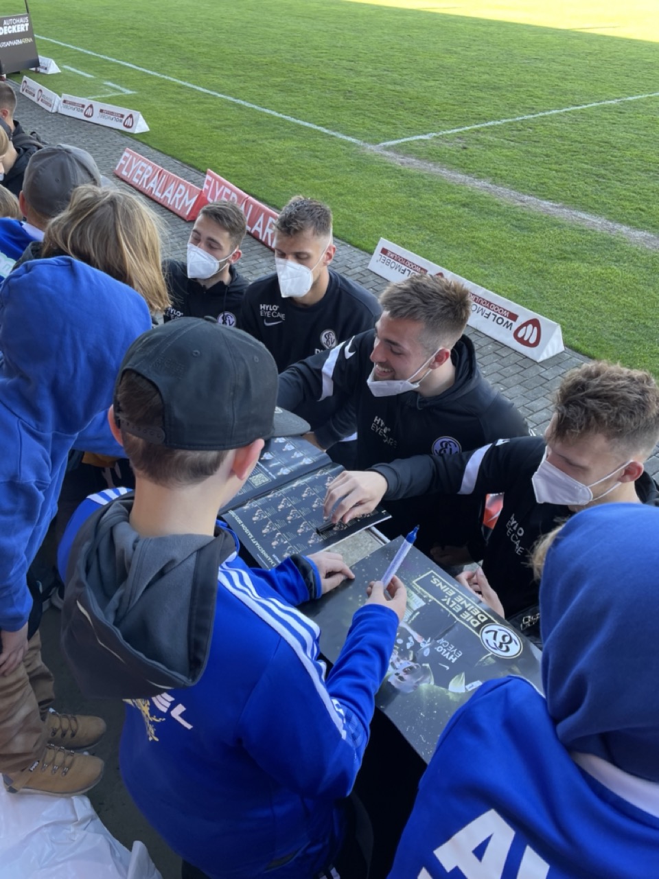 Am Samstag vor dem Camp hatten sich alle Kinder und Eltern beim Regionalliga-Spitzenspiel der SVE gegen Steinbach kennen gelernt. Die Camp-Kinder hatten freien Eintritt und feierten die Profis der SVE aus dem Fanblock an. Mit Erfolg: die SVE gewann das Spiel mit 3:0 und hat bekanntlich zwischenzeitlich den Aufstieg in die Dritte Liga geschafft. Im Anschluss an das Spiel bekamen die Kinder eine exklusive Autogrammstunde mit allen Profis der SVE.