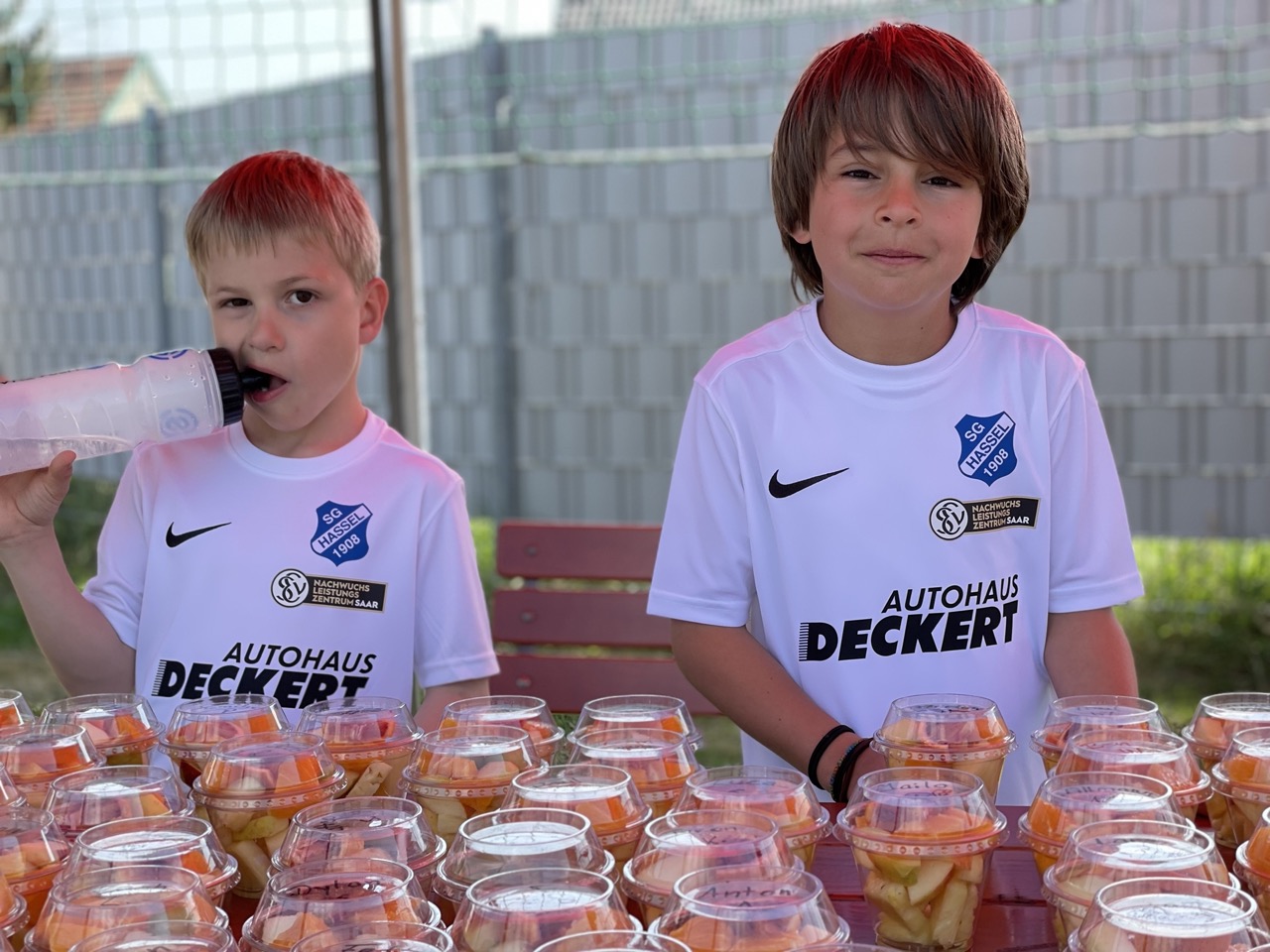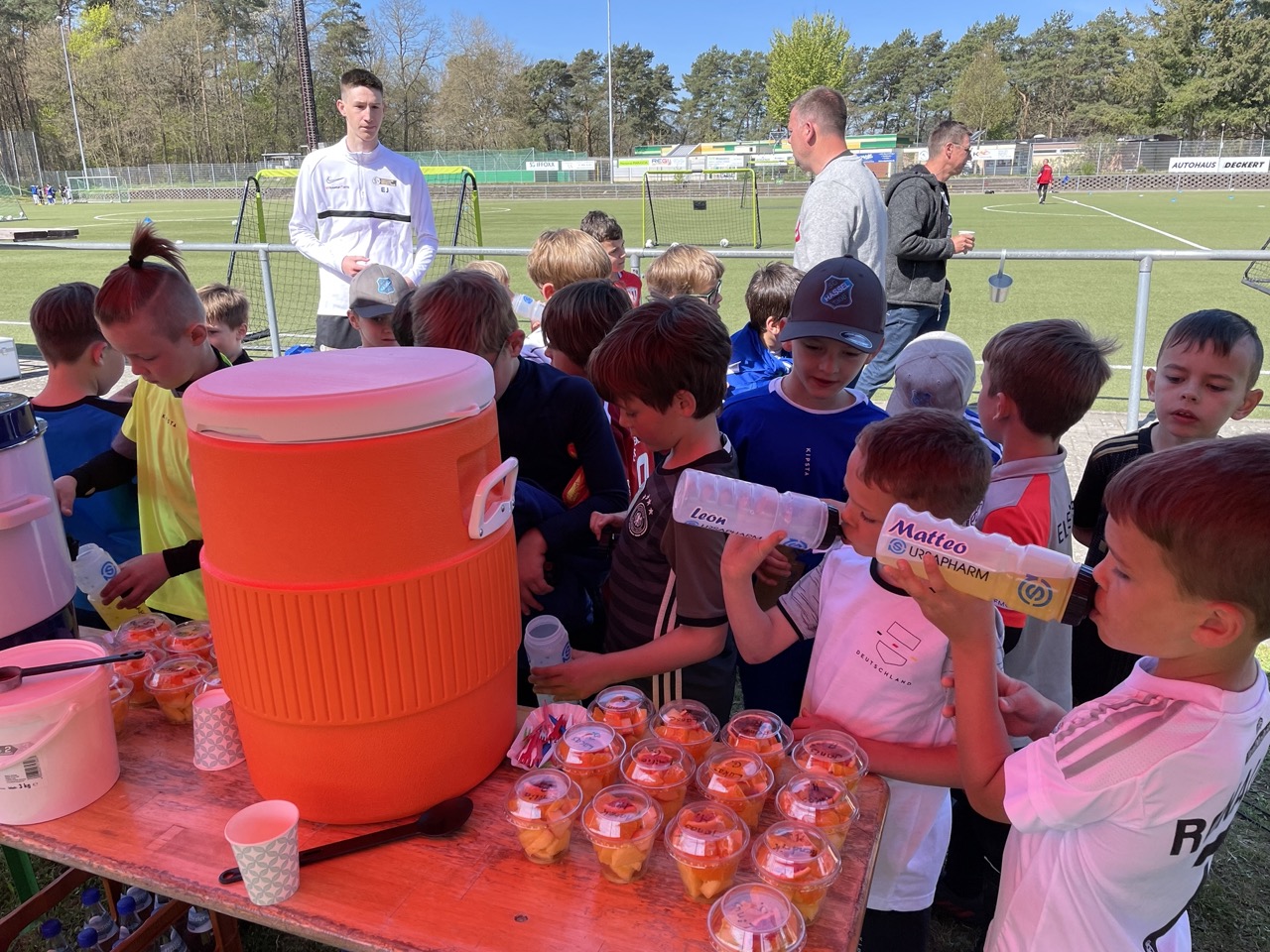 Während des Camps bekamen die Kinder als Verpflegung einen Obstbecher als Imbiss und eine kostenlose, sportlergerechte Mahlzeit in den Mittagspausen. Außerdem standen kostenfreie Getränke zur Verfügung. Zusätzlich bekam jedes teilnehmende Kind ein Camp – Trikot, eine Getränkeflasche, einen Sportbeutel und einen Fanschal. Ermöglicht haben dies vor allem die vielen Sponsoren, die den Verein zahlreich und tatkräftig unterstützt haben- ebenso wie die vielen ehrenamtlichen Helfer rund um die Betreuung im Camp.