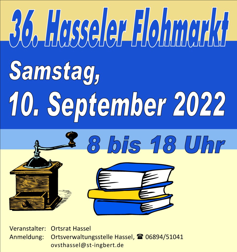 Allgemein Flohmarkt Hassel: 10. 9. 2022, 8-18 Uhr Verfasst von Christa Strobel am 27. August 202228. August 2022 Teilen mit: Auf Facebook teilen (Wird in neuem Fenster geöffnet) Facebook Auf WhatsApp teilen (Wird in neuem Fenster geöffnet) WhatsApp Auf X teilen (Wird in neuem Fenster geöffnet) X Einen Link per E-Mail an einen Freund senden (Wird in neuem Fenster geöffnet) E-Mail Gefällt mir Wird geladen … Ähnliche Beiträge