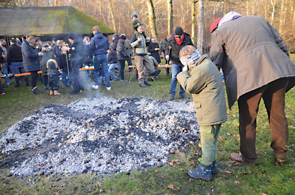 gegen 12:30 Uhr ordentlich Glut für hundert Kilo Kartoffeln bereit war. Das Brennholz