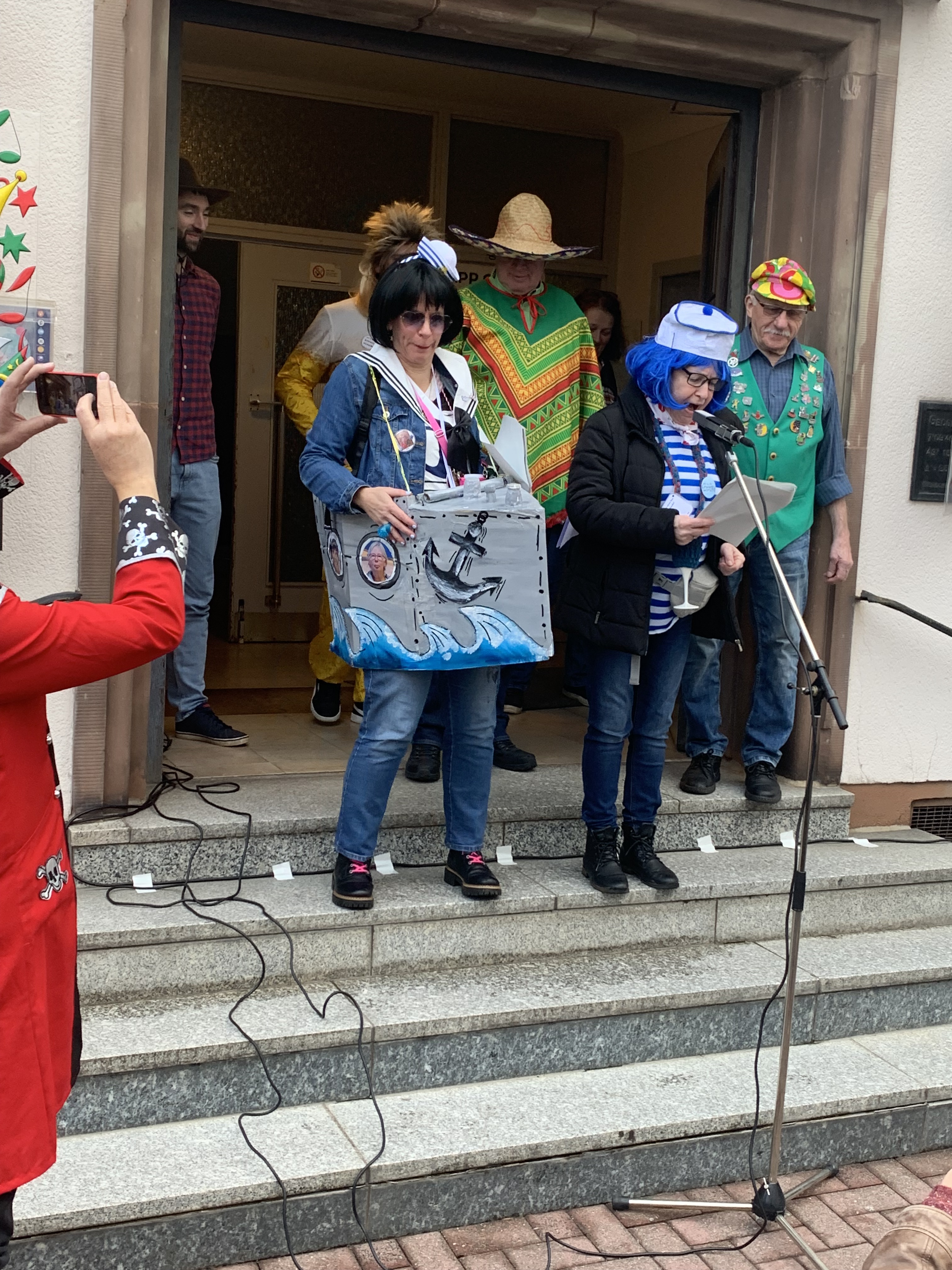 Die evangelische Kita sowie der KCH Hassel und einige standesgemäß verkleideten Frauen waren dabei, als Ortsvorsteher Markus Hauck mit seinem Ortsrat verzweifelt versuchte, seine „Herrschaft“ zu verteidigen. Zunächst: Alle Frauen sind ungeeignet zum „Regieren“. Die anwesenden Frauen wehrten sich mit Zwischenrufen, Bert Zitt gab Kontra. Stephanie Knoch und Susi Vicentini trugen in gereimter Form die Begründung dafür vor, dass Frauen besser geeignet seien, im Rathaus zu agieren. Nach dem Schlager „An der Nordseeküste“ sangen dann alle Frauen „An der Altweiberfastnacht“ und untermalten noch einmal ihre Forderungen. Schließlich eroberten die anwesenden „Frauen“alten Weiber“ den Rathausschlüssel und die Party begann, untermalt von Fastnachtsschlagern. Ortsvorsteher Markus Hauck hat jetzt ein paarTage Ruhe.