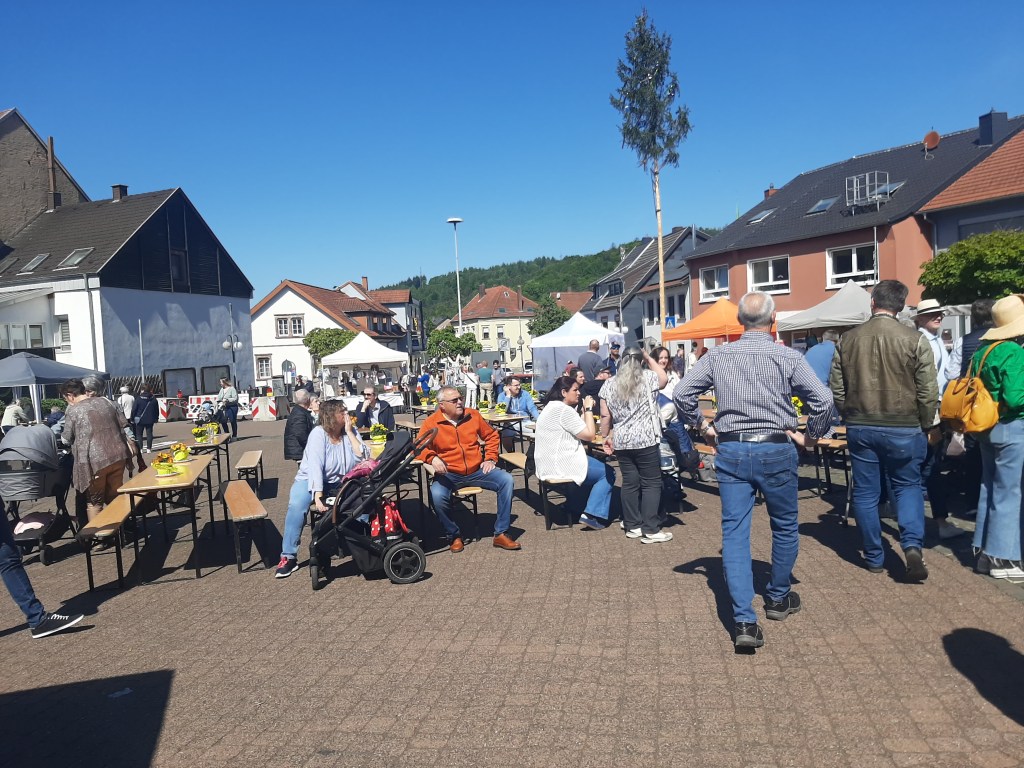 Diesmal hatte der Kuckucksmarkt bis 17 Uhr geöffnet, das war gut, konnte man doch noch Kaffee und Kuchen genießen. Die Eröffnung erfolgte durch Ortsvorsteher Markus Hauck und die Kita Herz Jesu, die ein tolles Programm zeigte. Zum Mittagessen waren alle Tische besetzt. Die VHS-Dozenten zeigten ein reichhaltiges Angebot an künstlerischen Arbeiten.