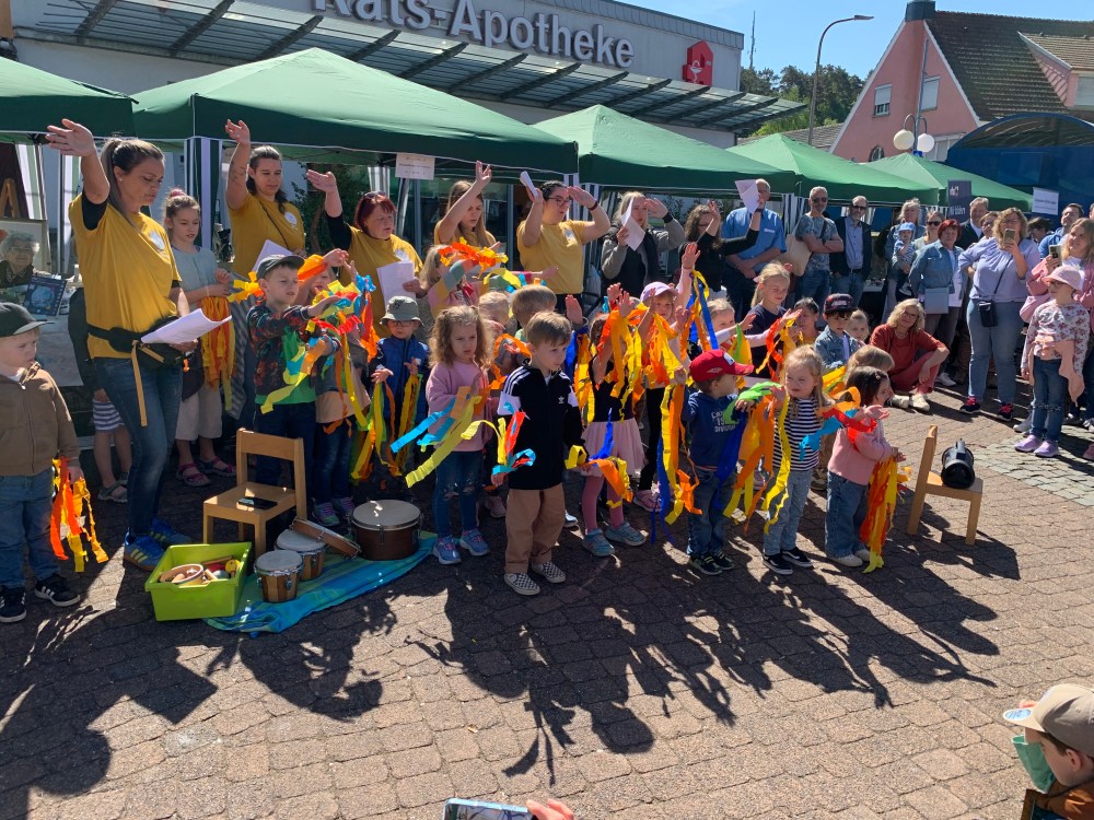 Bei wunderschönem Wetter wurde der Kuckucksmarkt am Samstag 10. Mai auf dem Marktplatz in Hassel von den Kleinen der Kita Herz Jesu Hassel musikalisch eröffnet. Die Kinder waren mit Begeisterung dabei und trugen verschiedene deutsche und französische Lieder vor, die sie mit französischen Fachkräften im Rahmen der bilingualen Förderungen einstudiert hatten. Über eine Woche wurden die Lieder in der KITA einstudiert, was bei immer mehr Kindern Interesse weckte, so dass letztlich nahezu dreißig Kinder an der Eröffnung teilnahmen. Ein herzliches Dankeschön den Kindern, aber auch dem Team der Kita Herz Jesu Hassel unter der Leitung von Frau Diana Steinberger.