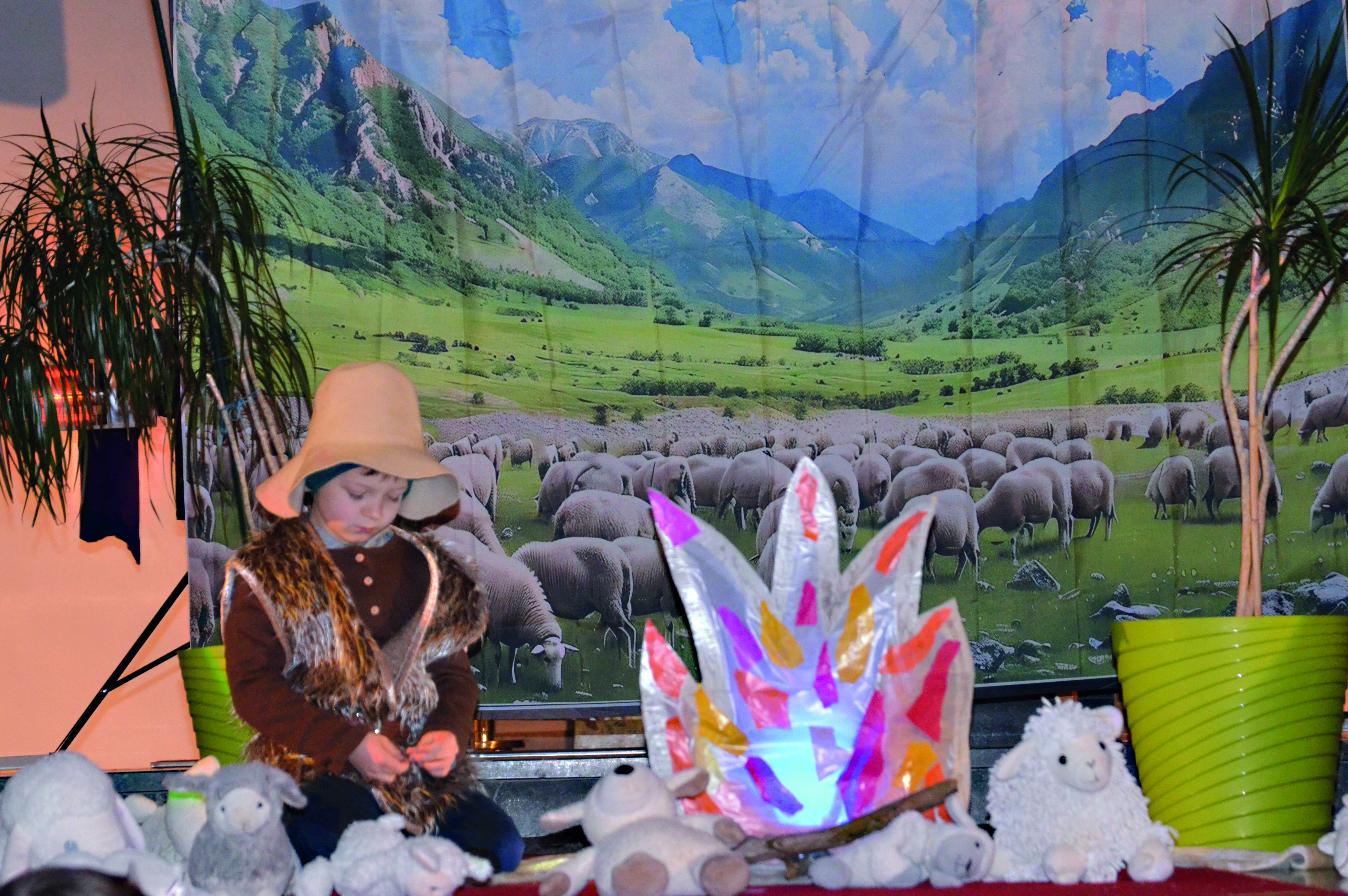 Die Geschichte: Simon, der sein Schaf in Wald und Feld suchte, traf auf Jakob, einen Räuber, einen Bettler und einen verletzten Wolf, dem er half. Sie alle hatten sein Schaf nicht gesehen, so dass Simon fast aufgeben wollte. Aber als ein helles Licht erschien, schöpfte er neue Hoffnung, traf noch andere Hirten und einen Engel, der die Geburt Jesu verkündete. Ein Stern zeigte ihnen den Weg nach Bethlehem, wo sie Josef, Maria und das Jesuskind fanden. Und das gesuchte Schaf lag in der Krippe beim Jesuskind. Eine Weihnachtsgeschichte, wie sie nicht lebendiger hätte dargestellt werden können.