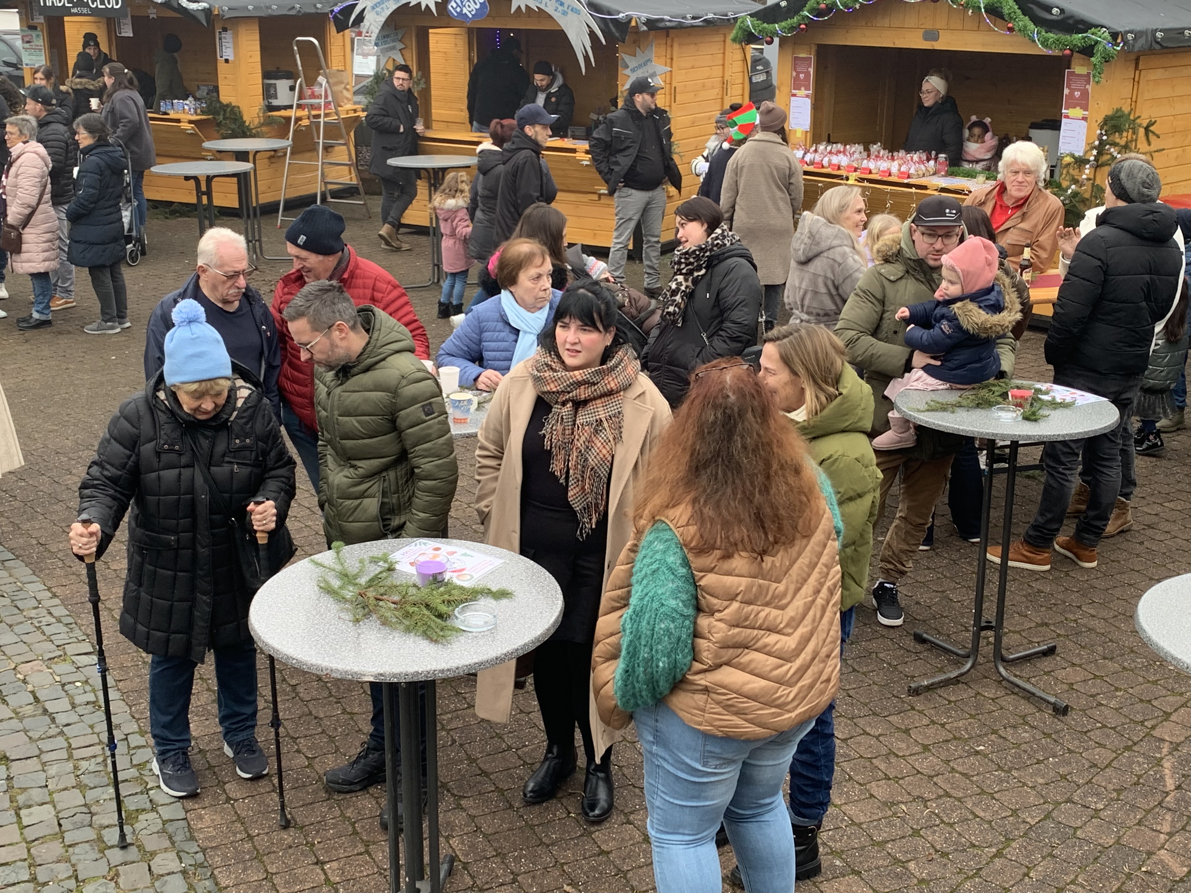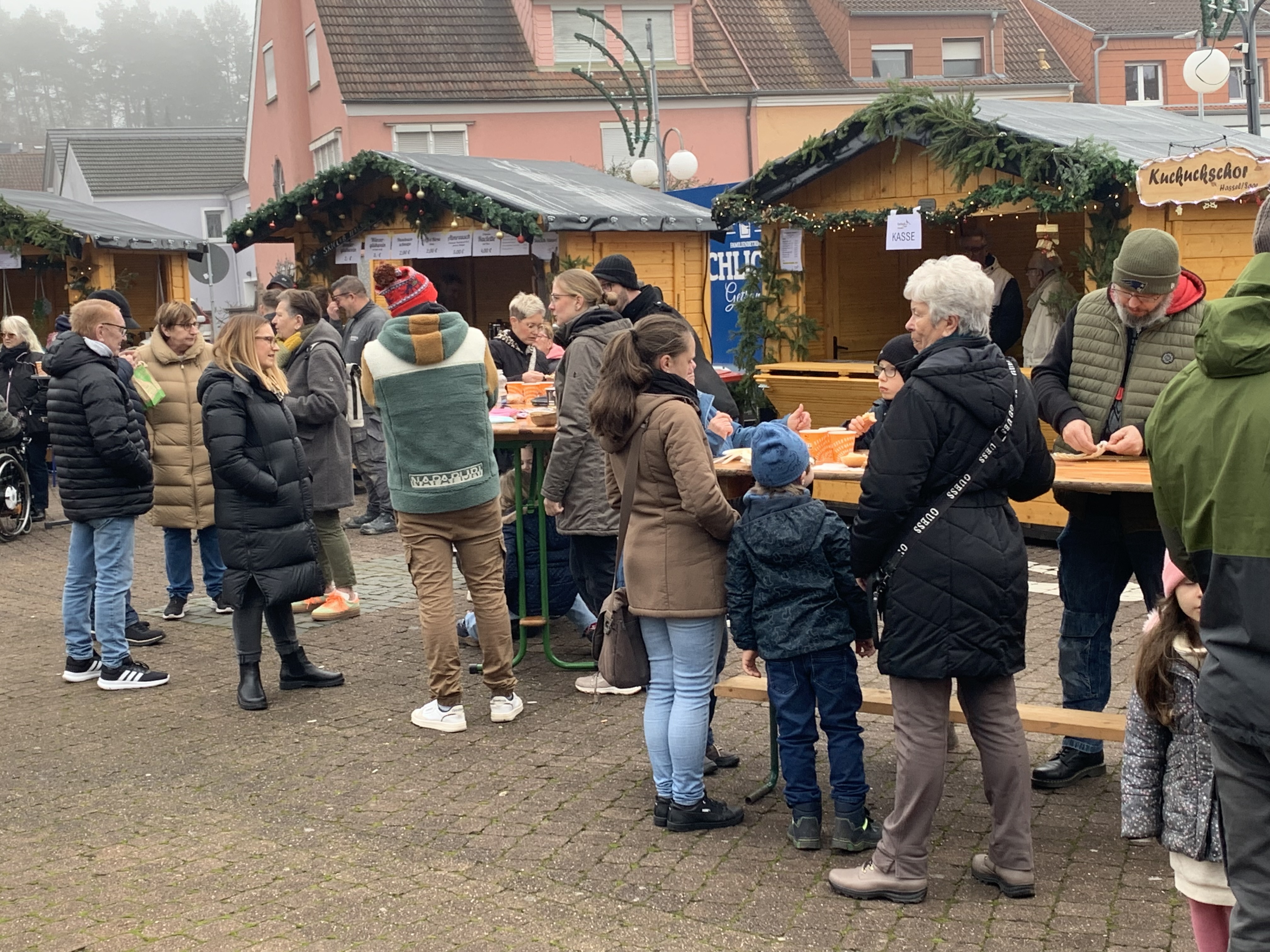 Viele Angebote an Speisen und Getränken bieten die Vereine an, so z. B. der Kuckuckschor seinen traditionellen Dibbelabbes von Fredi Körner, Rostwürste, Raclette, Süßes, Plätzchen und vieles mehr. Gleichzeitig wird auch für einen Hospiz und Bücher um Spenden geworben. Die Pfadfinder bieten in ihrem warmen Zelt Wildsuppe und Crêpes an. Schon früh war der Marktplatz gefüllt.