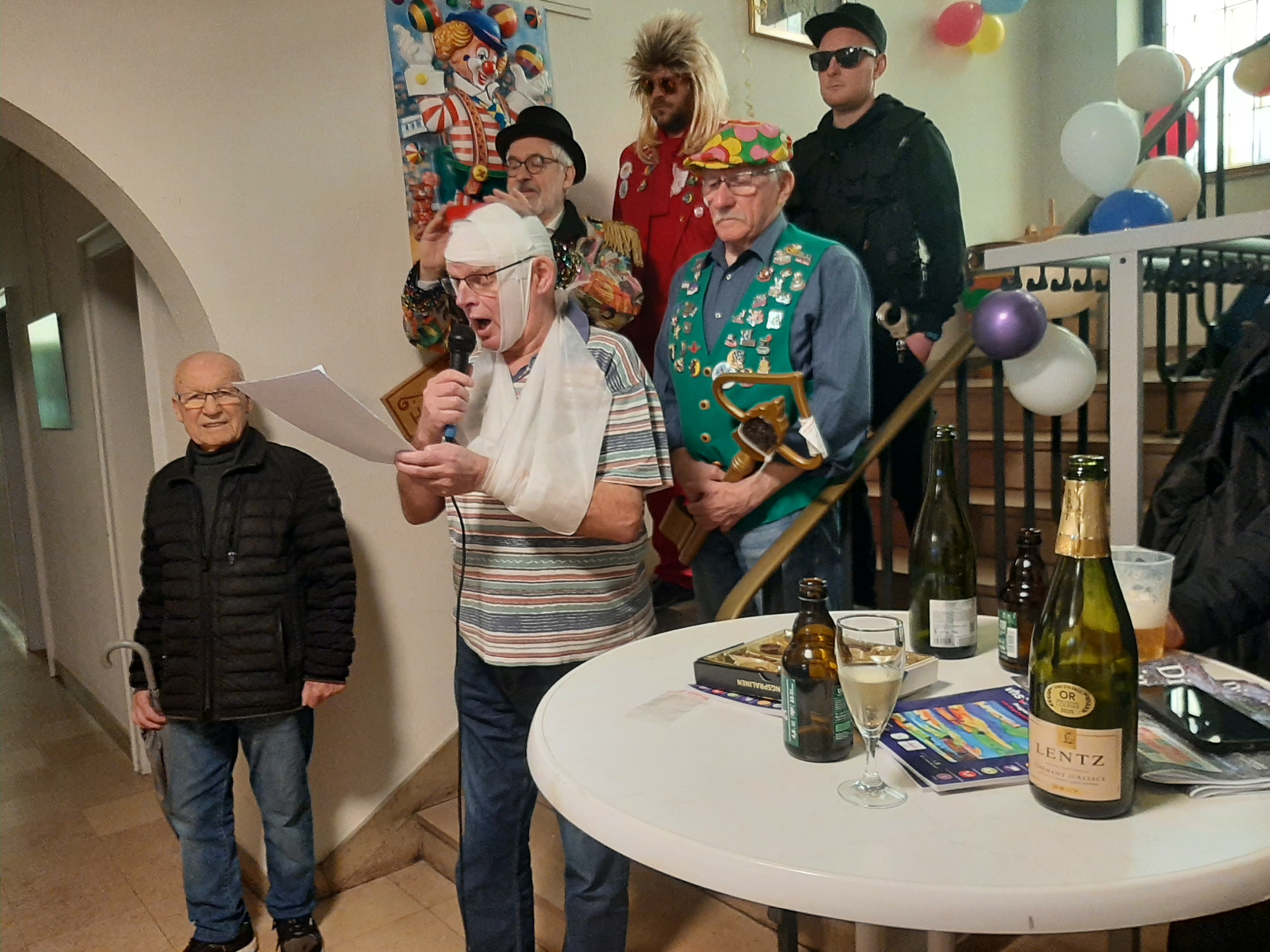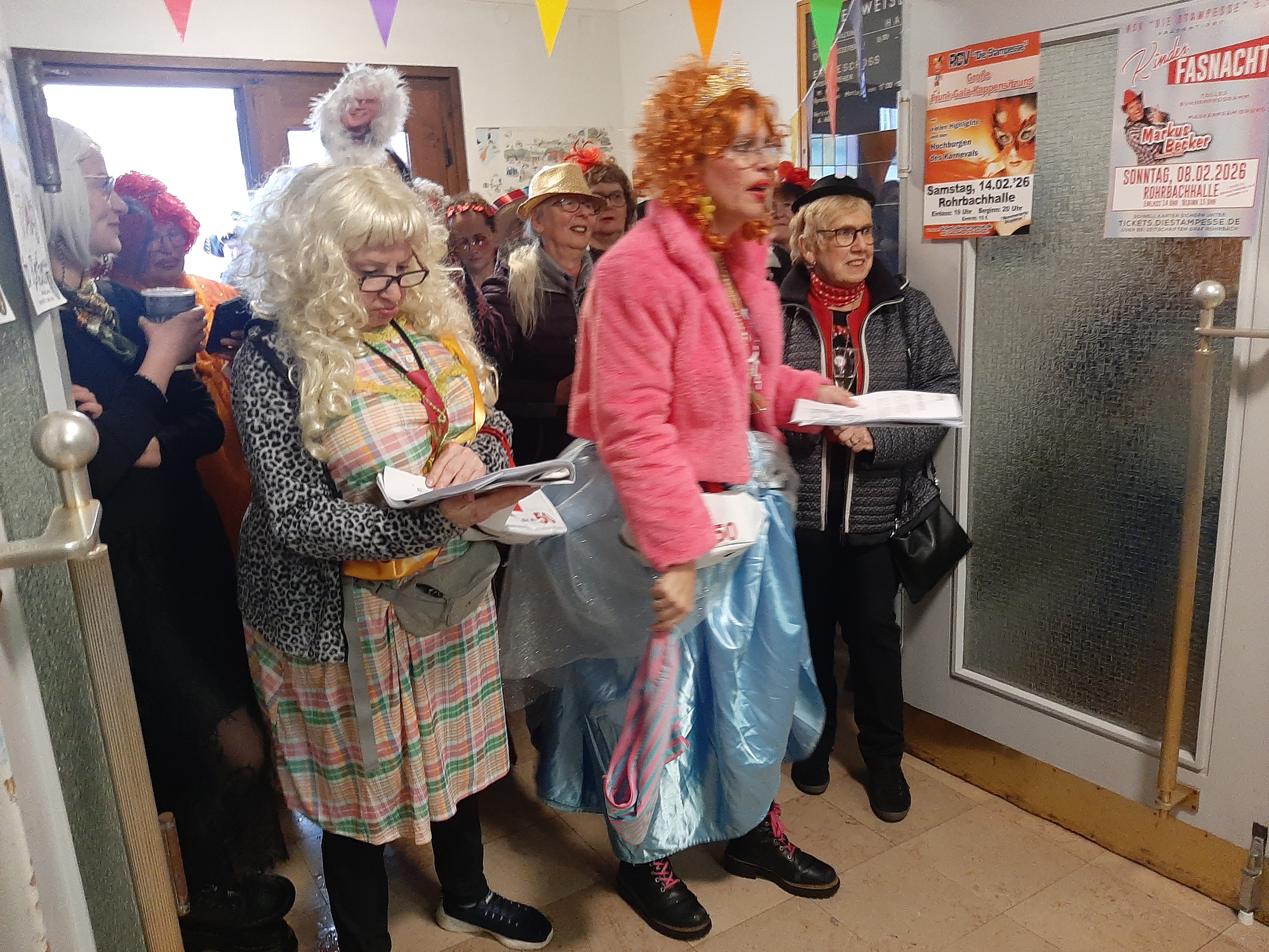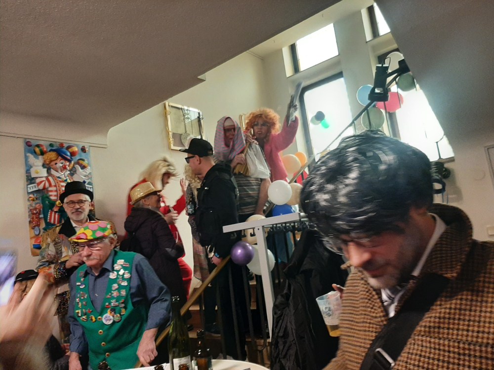 Weil es regnete, verlegte Ortsvorsteher Markus Hauck mit seinem Ortsrat die Veranstaltung ins Innere des Rathauses. Trotz des Regens waren viele maskierte Menschen gekommen, um der Rede von Steffi und Susi zu lauschend zu sehen, wie diese trotz enormer Gegenwehr dem „Oertsforts“ den Rathausschlüssel abnahmen. Zuvor hatte der Ortsvorsteher mit seinen männlichen Kollegen mit Macht den Rathausschlüssel verteidigt und darauf hingewiesen, dass er und seine „Mannen“ im Rathaus wertvolle Arbeit für die Hasseler Bevölkerung leisteten (und das, obwohl auch Frauen im Ortsrat arbeiten).