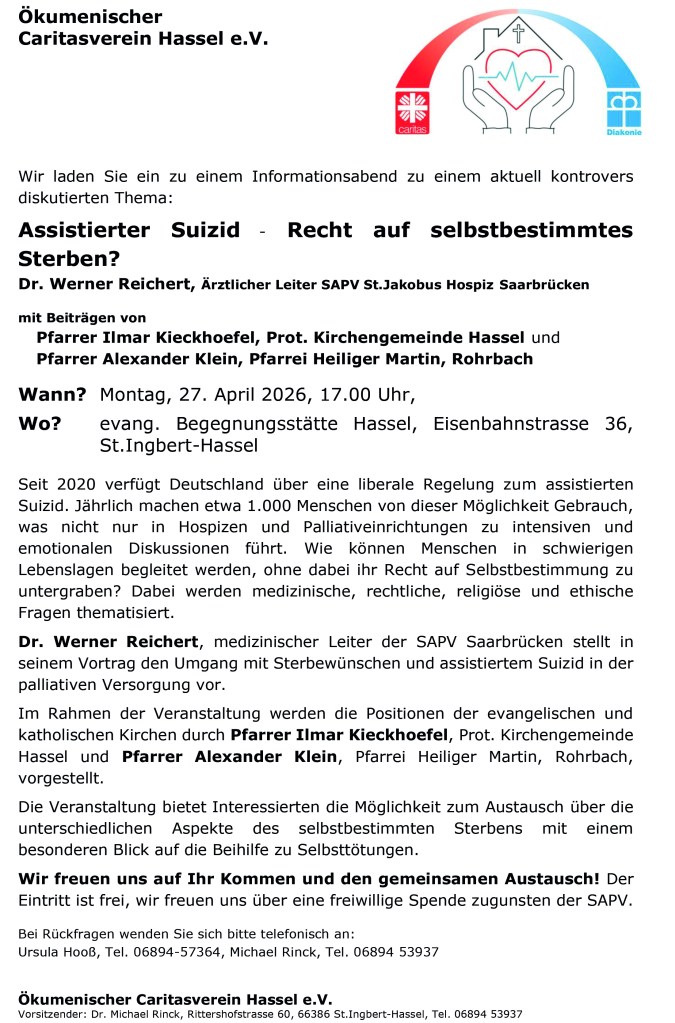 Allgemein Vortrag „assistierter Suizid“ Verfasst von Christa Strobel am 9. April 20269. April 2026 Daily writing promptWhat’s the most fun way to exercise?View all responses Teilen mit: Auf Facebook teilen (Wird in neuem Fenster geöffnet) Facebook Auf WhatsApp teilen (Wird in neuem Fenster geöffnet) WhatsApp Auf X teilen (Wird in neuem Fenster geöffnet) X Einen Link per E-Mail an einen Freund senden (Wird in neuem Fenster geöffnet) E-Mail Gefällt mir Wird geladen … Ähnliche Beiträge